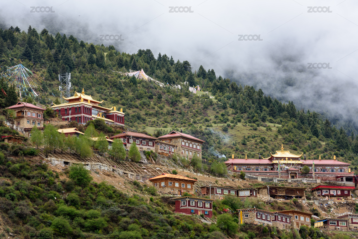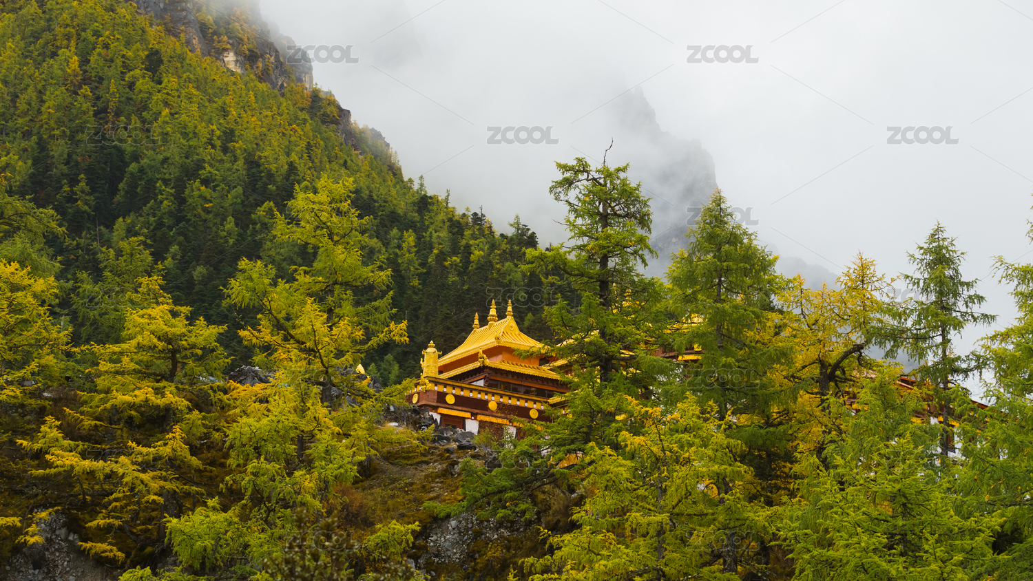 中国川西甘孜州格聂南线上的新冷古寺风光