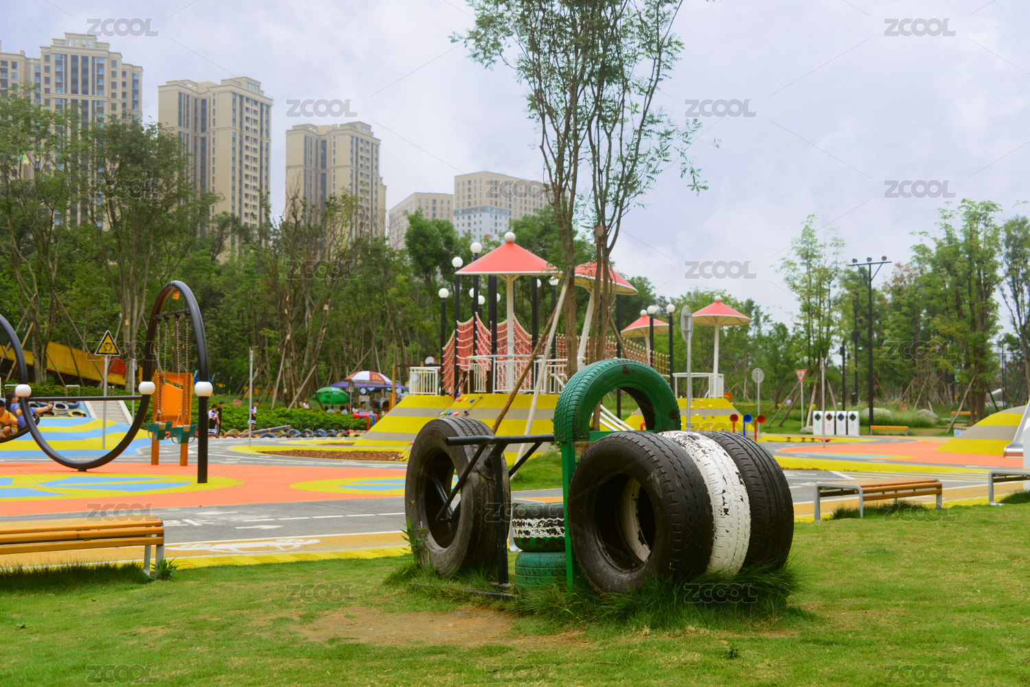 中国广东广州南沙区绿轴公园的儿童游乐场