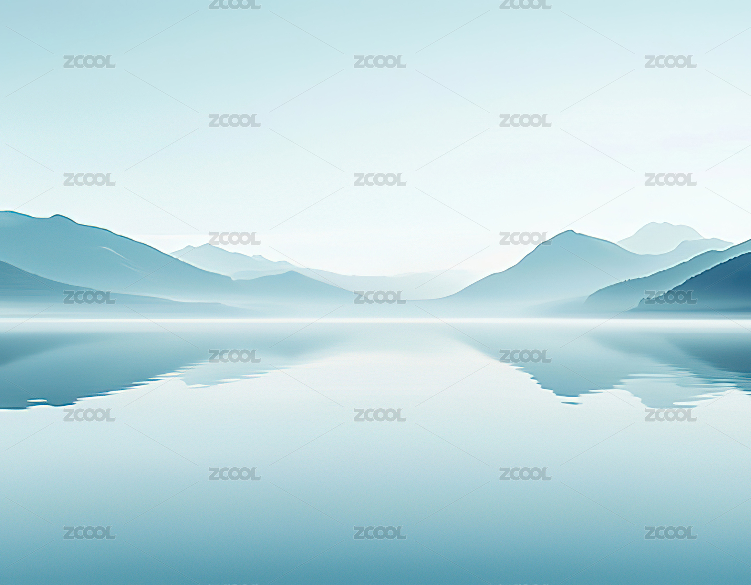唯美简约扁平风山脉和湖面倒影