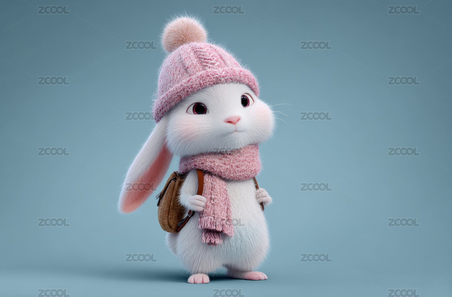 雪兔, 冬日, 兔兔, 帽子, 围巾, 卡通, 可爱, 粉色, 雪花, 萌宠