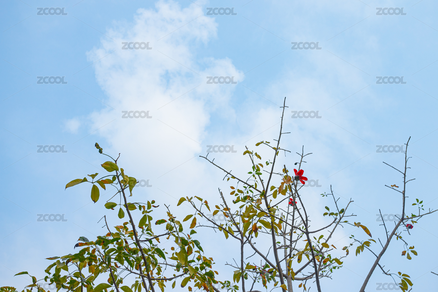 红色的木棉花在天空里绽放