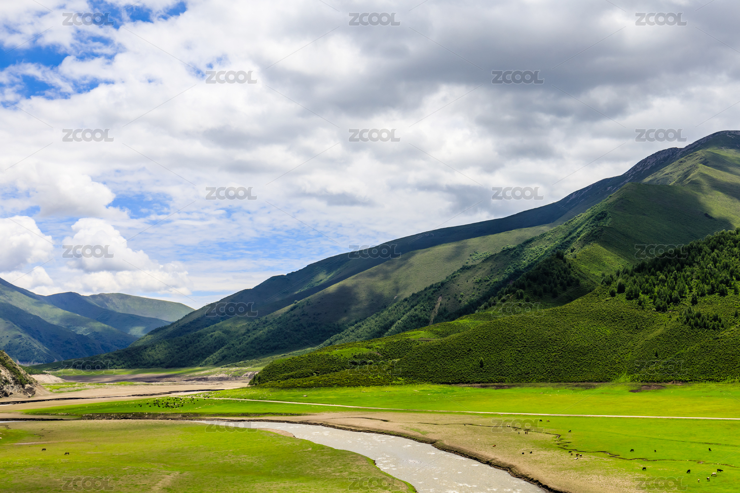 甘南秘境洛克之路连绵绿色山脉蓝天白云