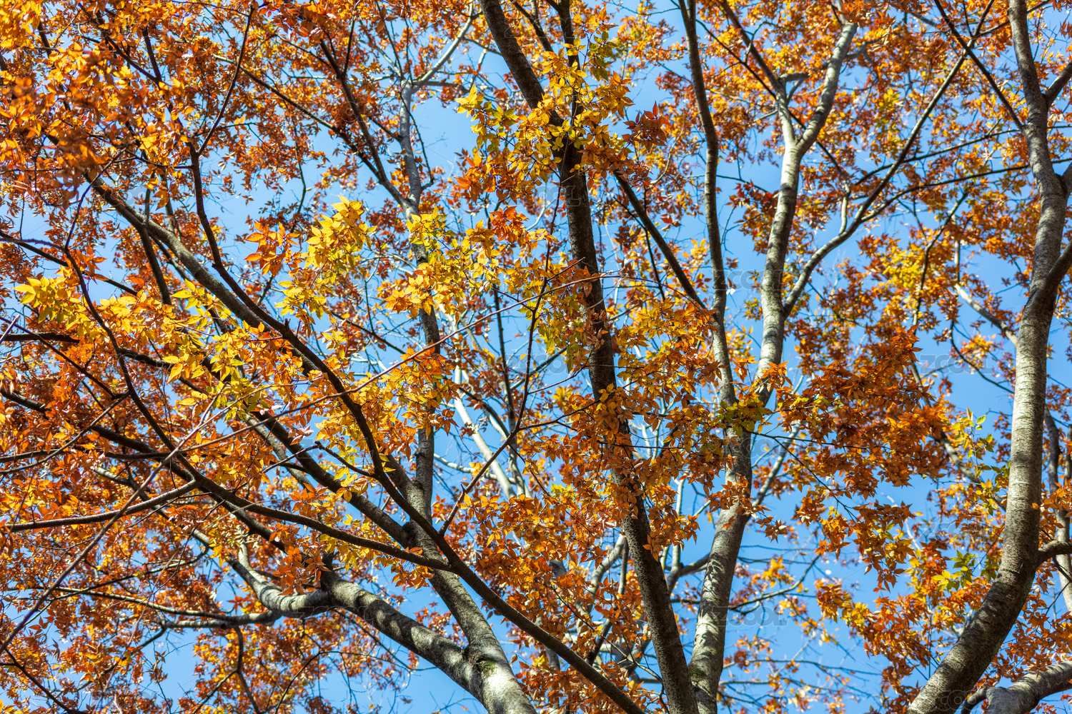 秋天北京怀柔喇叭沟原始森林蒙古栎黄叶