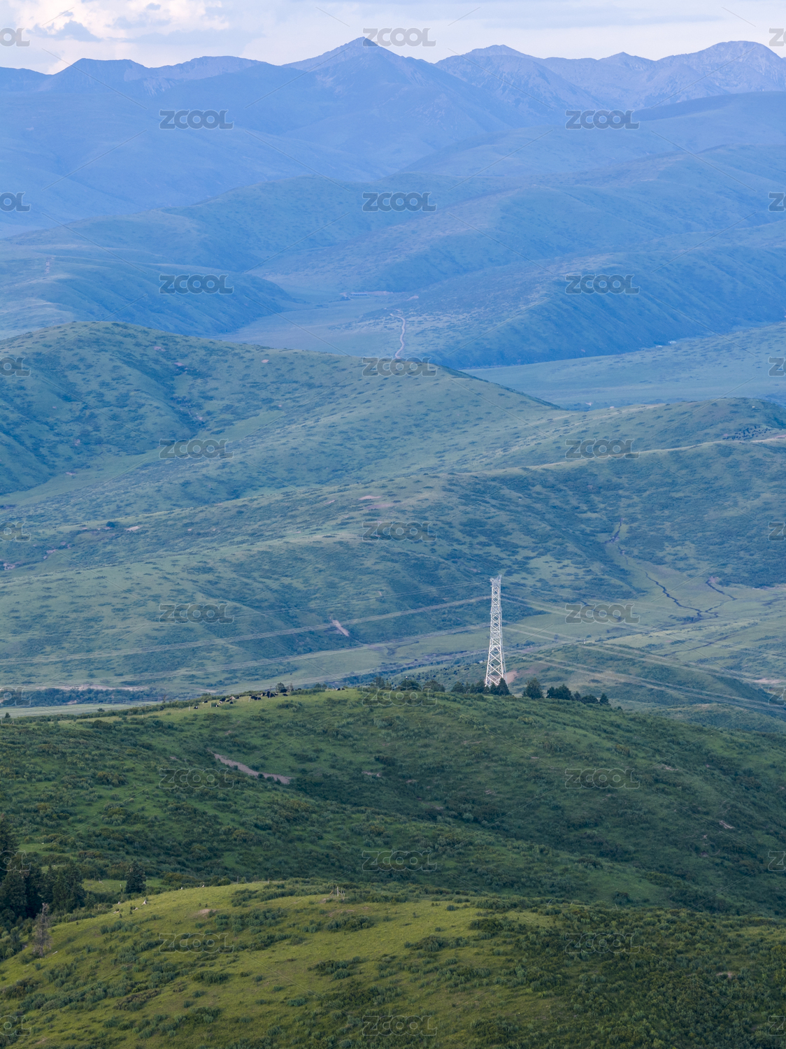 崇礼滑雪小镇山顶森林山顶风力发电大风车