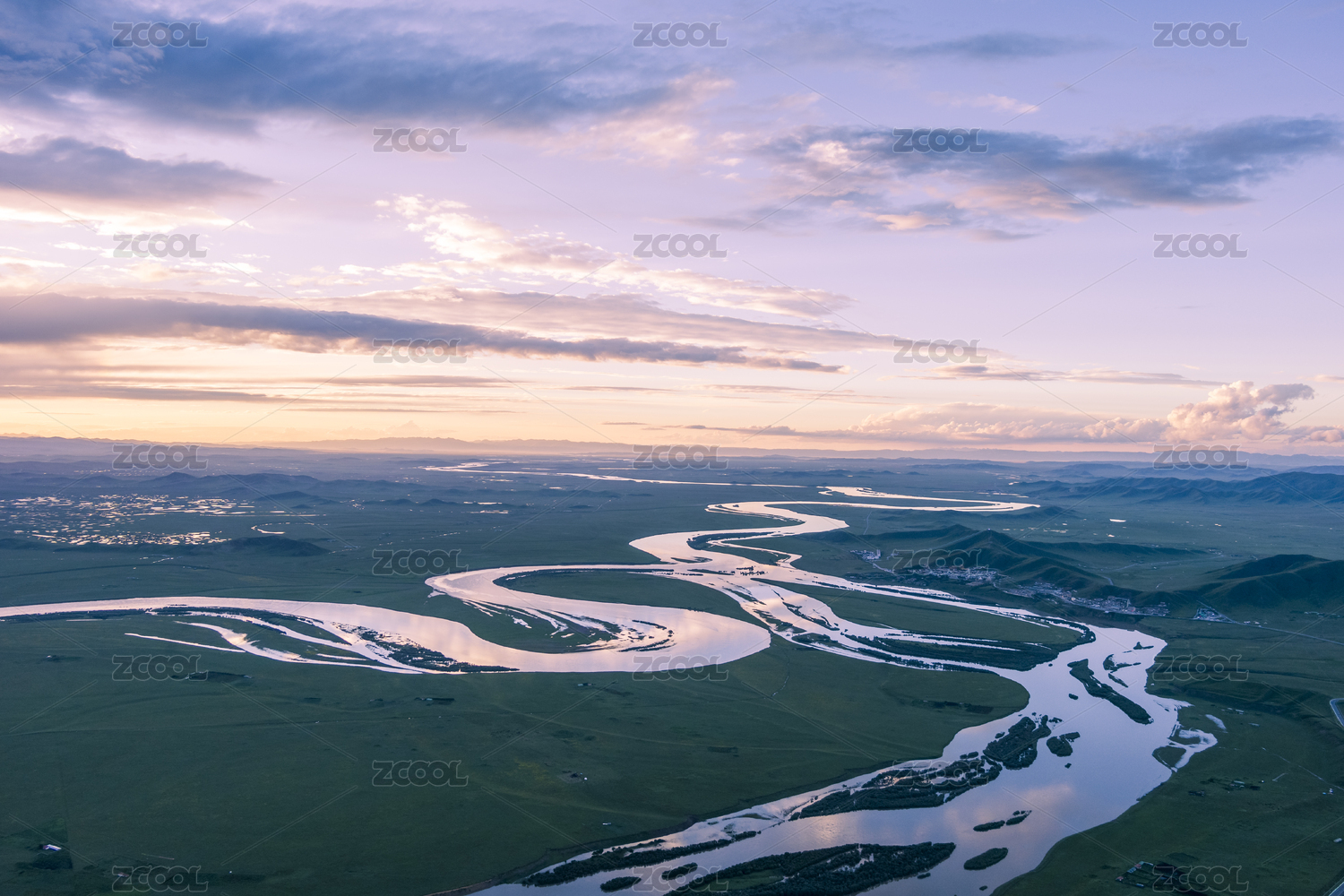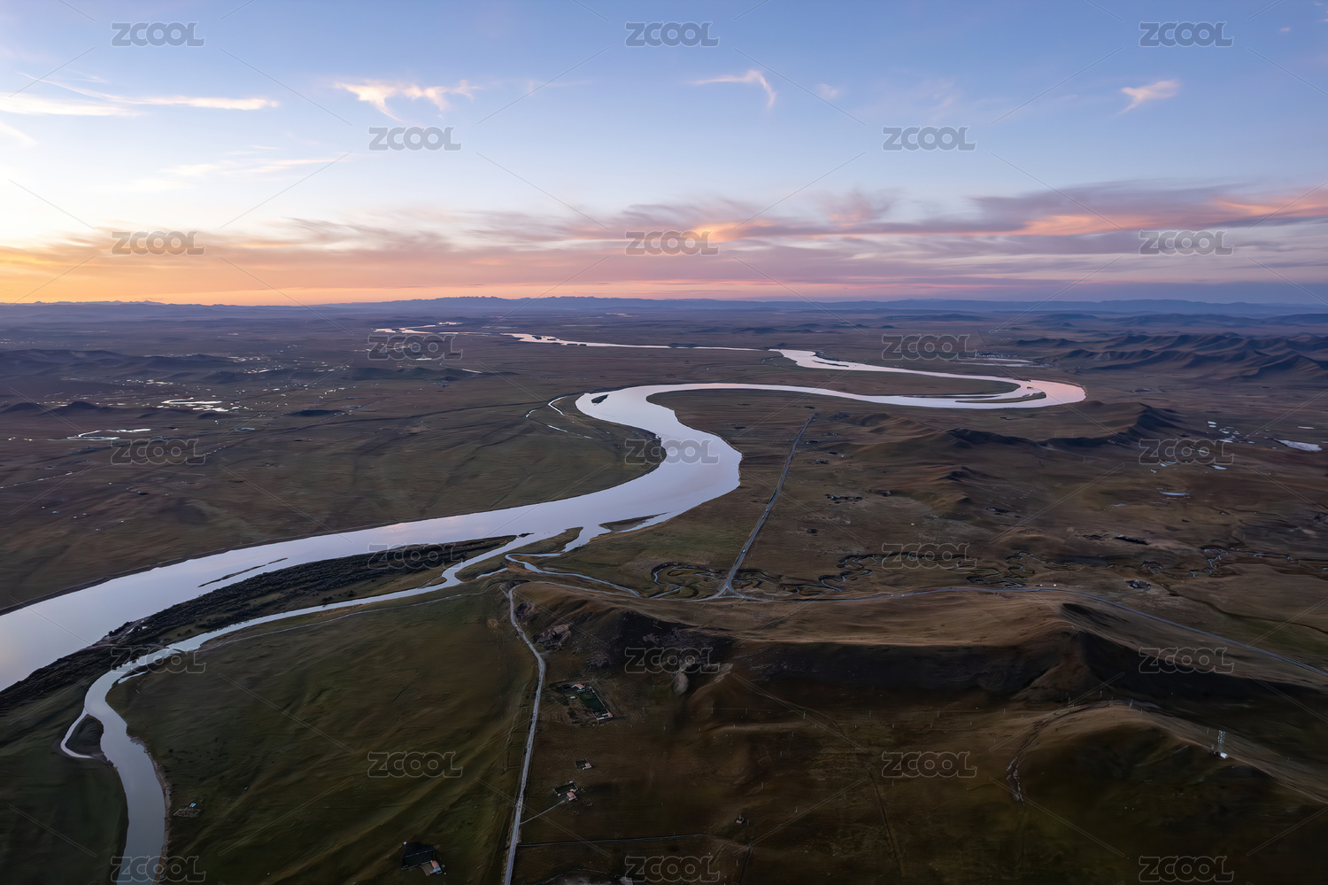 白河流域和九曲黄河第一湾傍晚风光航拍