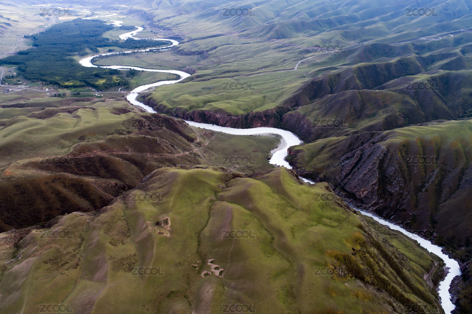 中国甘肃甘南唐克镇九曲黄河风景区航拍