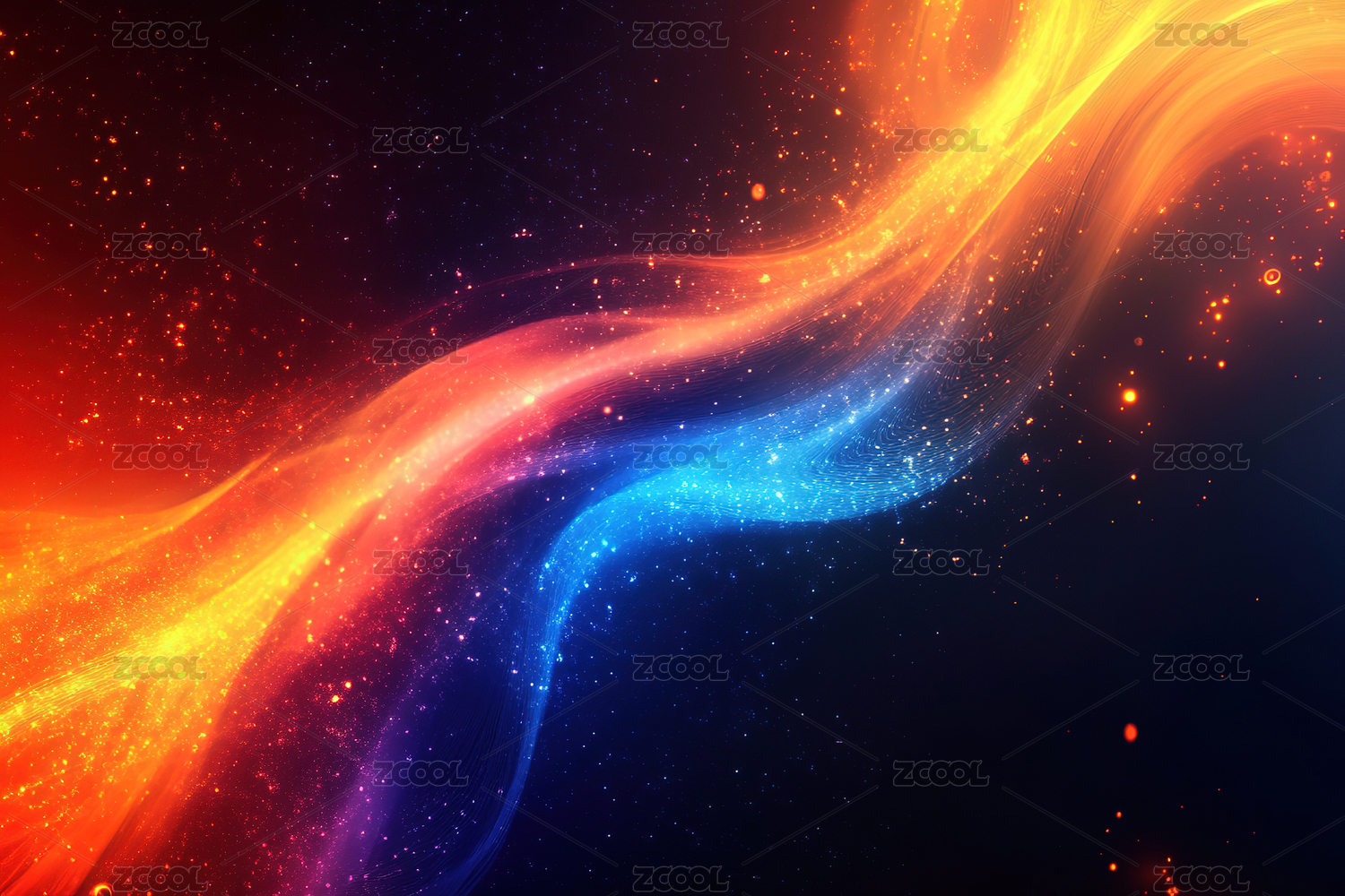 五彩缤纷的抽象发光魔法火焰波浪背景