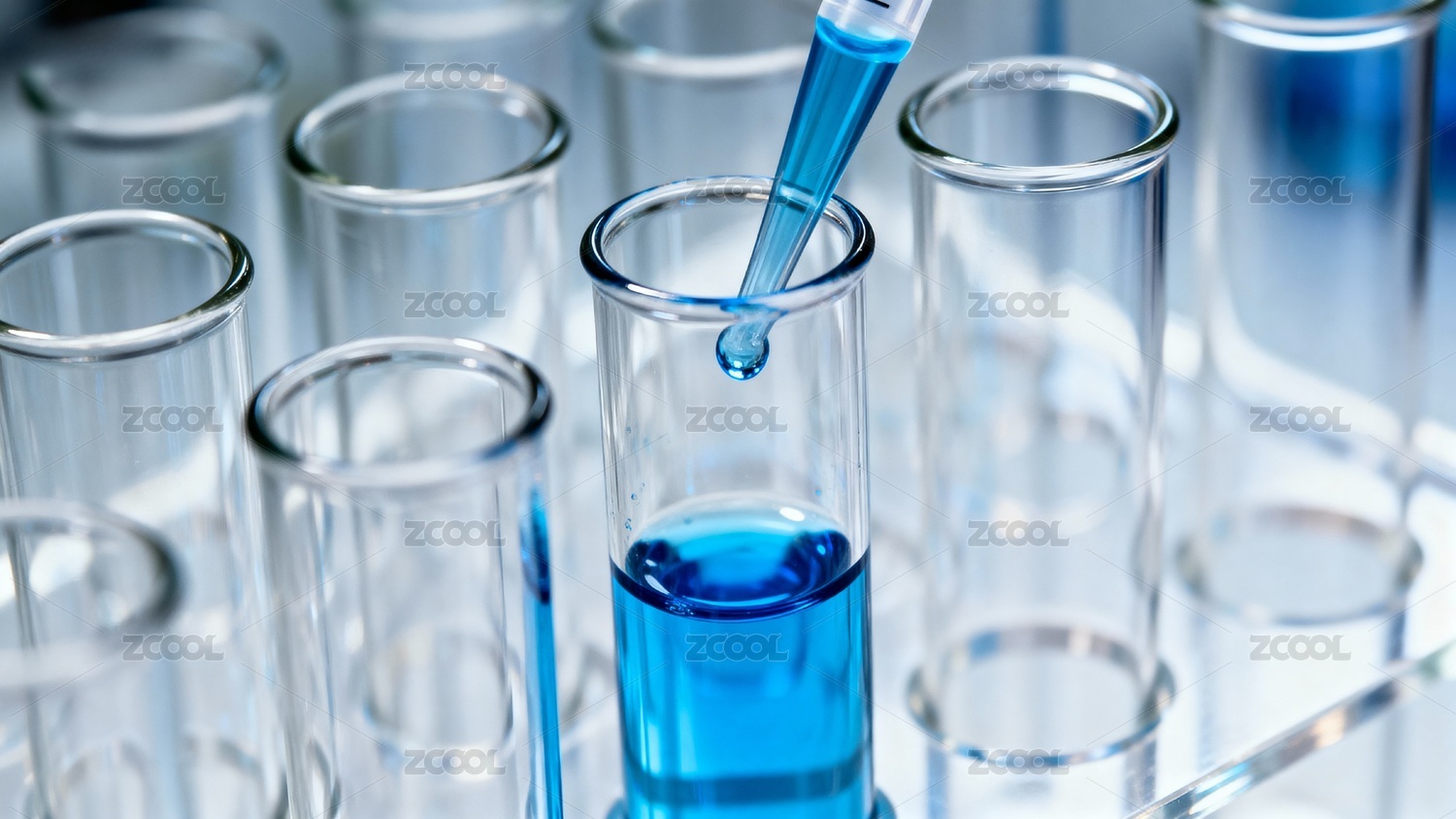 医疗, 分析, 手, 蓝色液体,实验室, 研究, 实验, 滴管, 试管, 精确