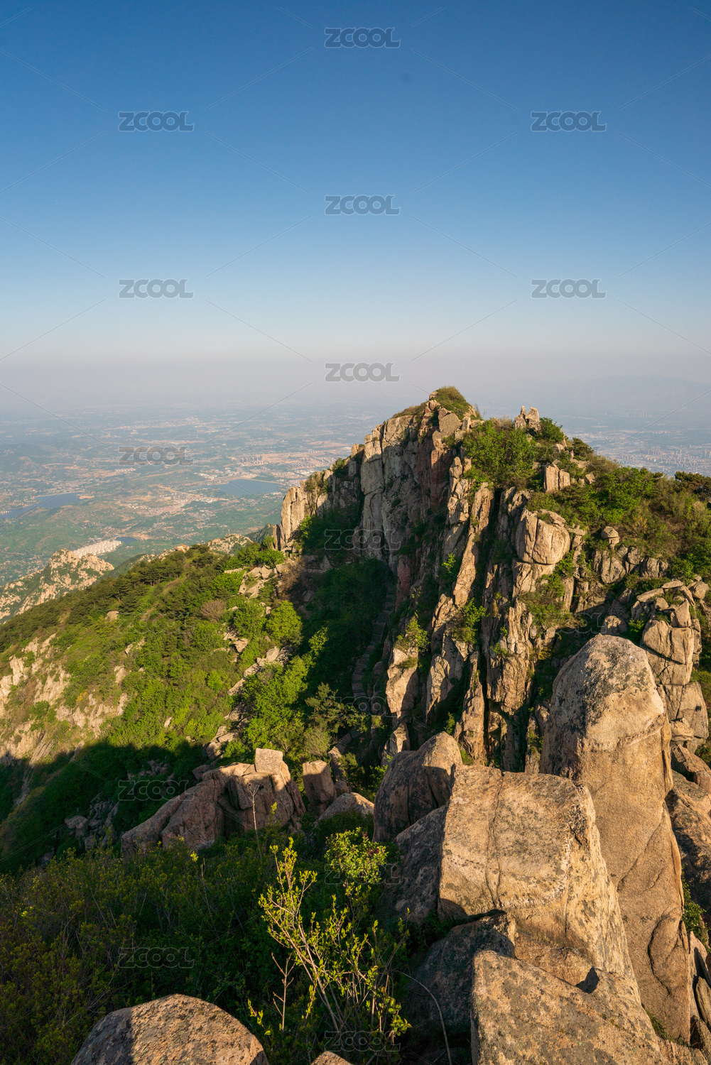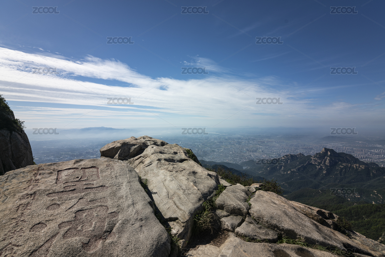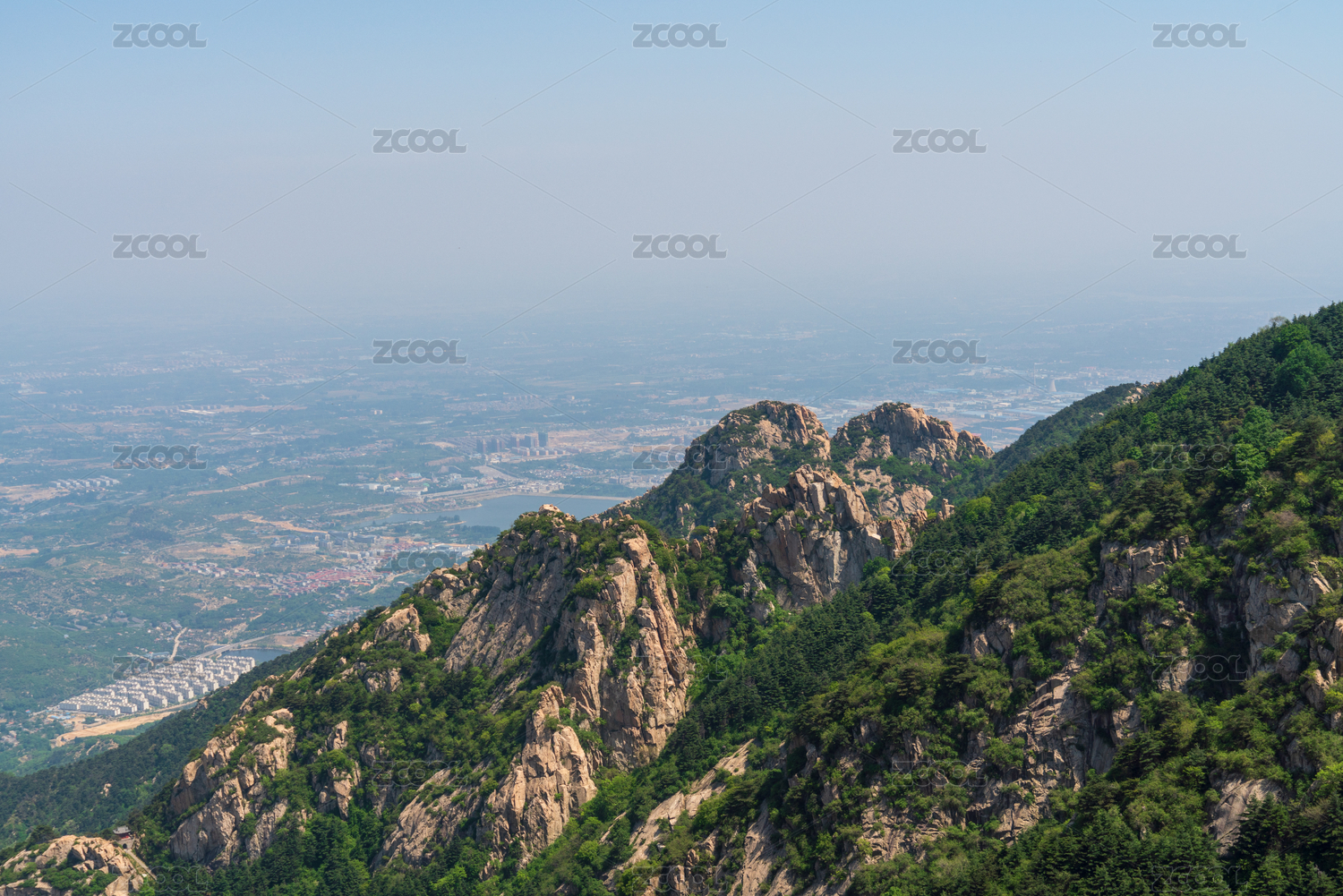夏日秋天山东泰安泰山风景名胜区鸟瞰泰山山