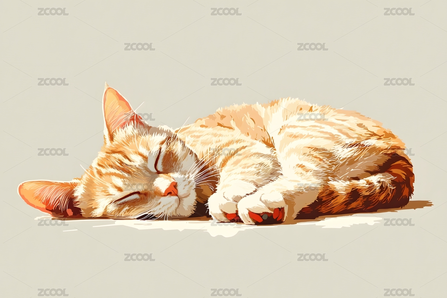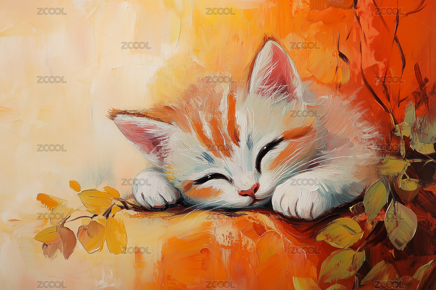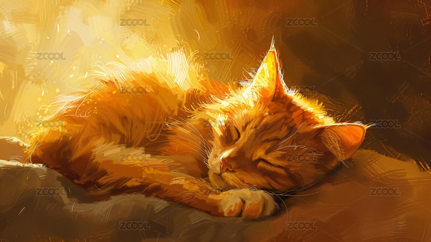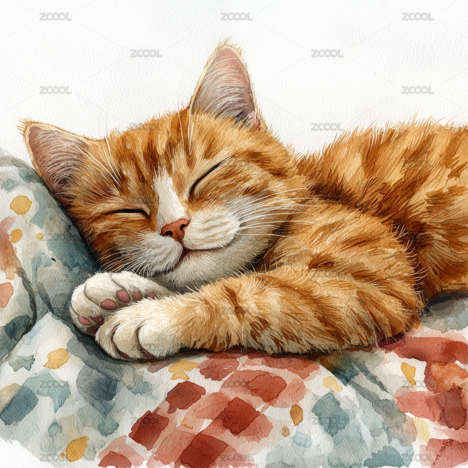 艺术,绘画,水彩画,可爱,动物,温暖,猫咪,睡觉,蜷缩,毛茸茸
