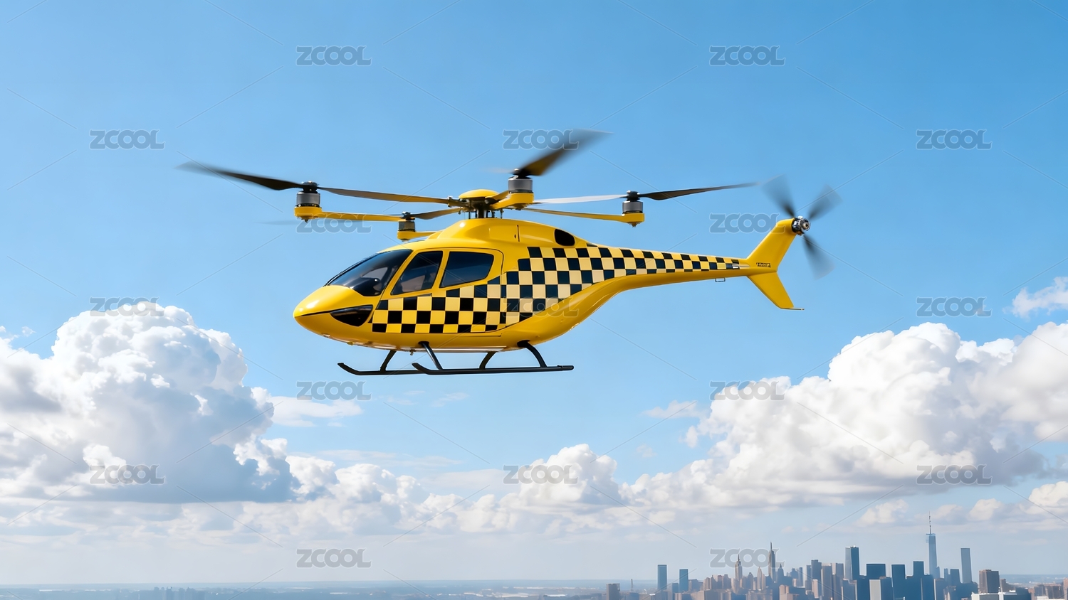 未来城市直升机起降场景