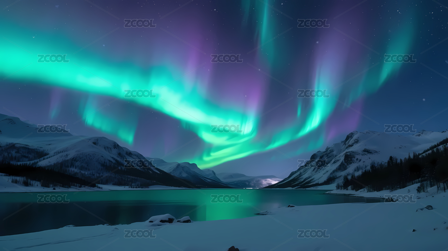 极光,湖边,夜晚,北欧,风景,自然,风光,景色,背景,旅游