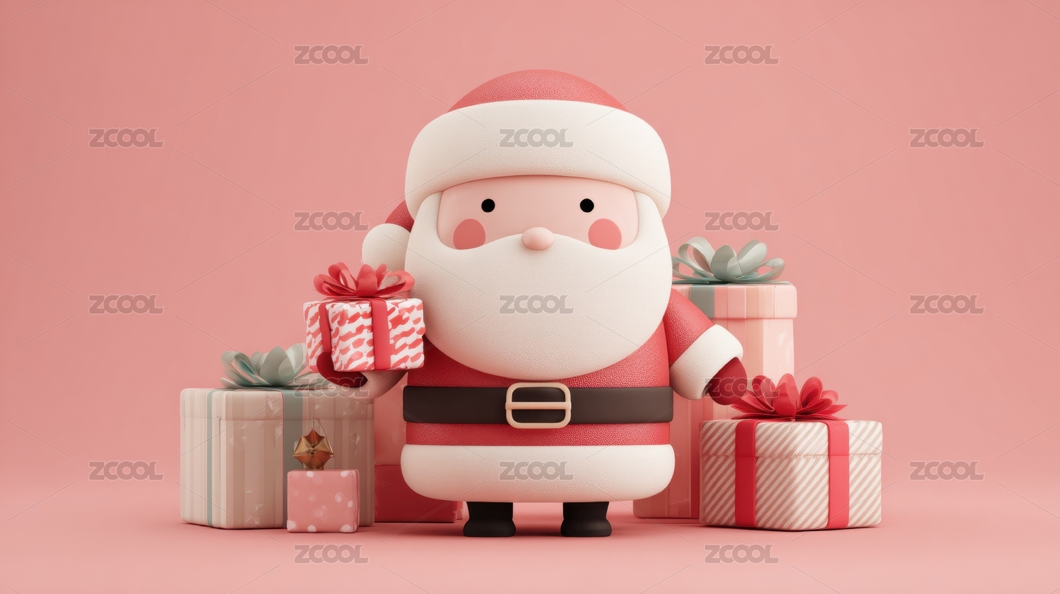 装饰礼品盒圣诞老人驯鹿和圣诞树