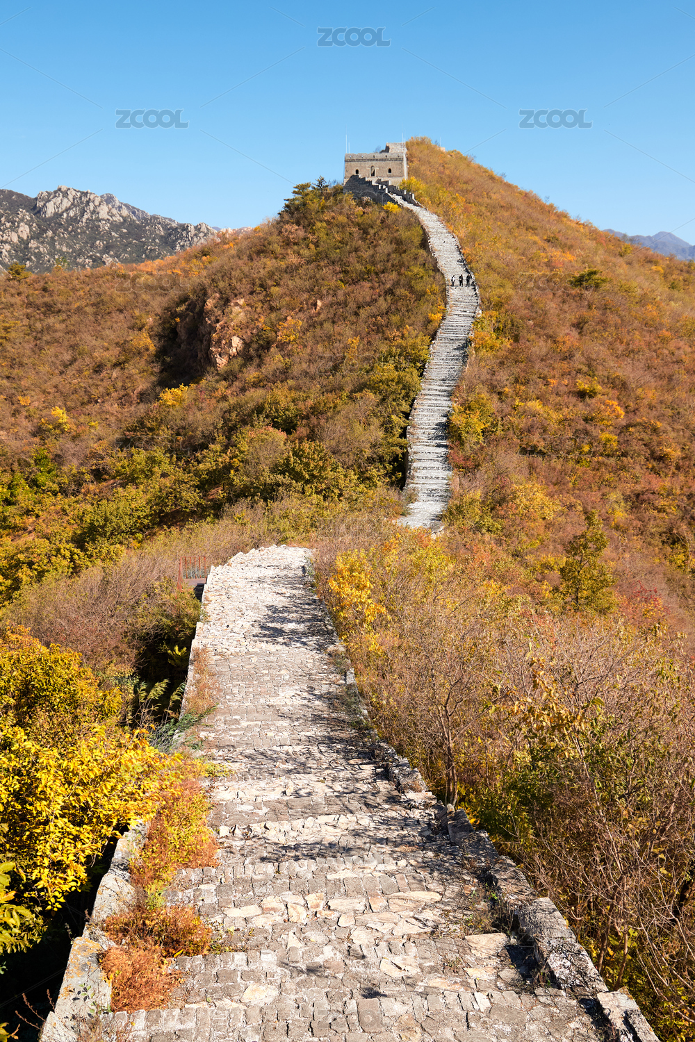 秋季北京野长城上的烽火台景色