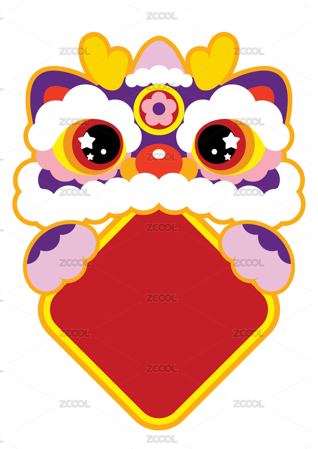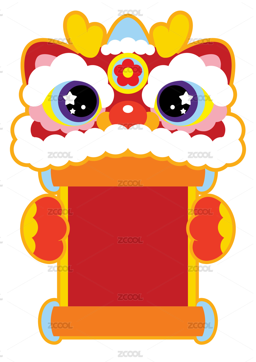 卡通2020鼠年狮子头庆祝中国风背景矢量插画