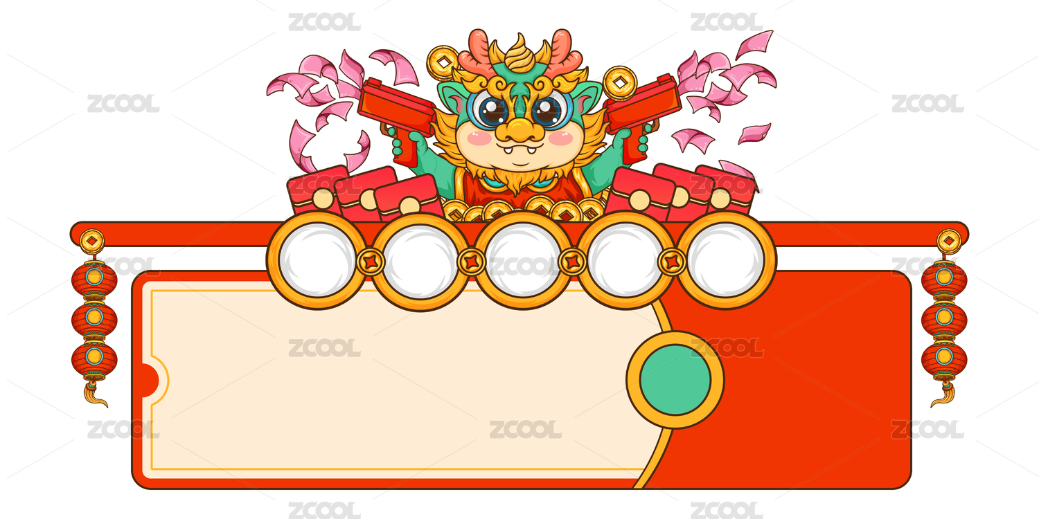 龙年喜庆电商促销活动横幅红包鞭炮装饰边框