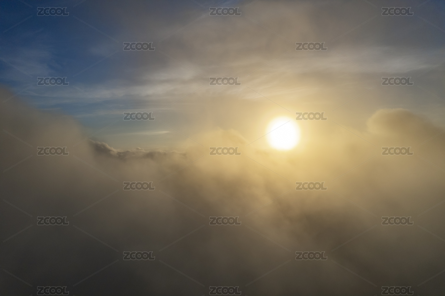 中国浙江杭州临安航拍牵牛岗群山云海日出