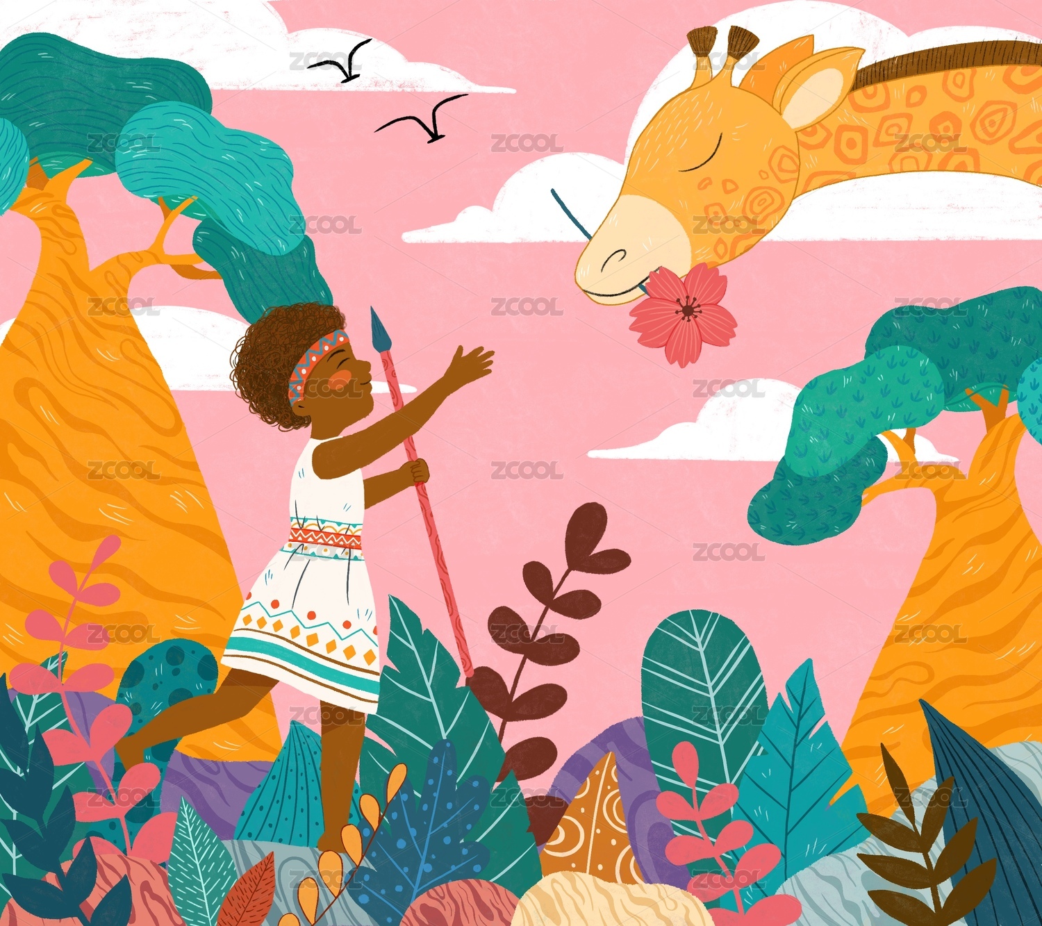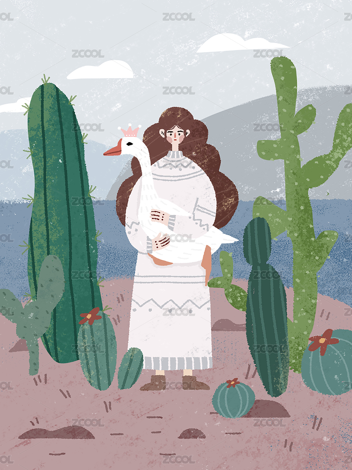 人,红花,女孩,鹅,公主,植物,蓝色,绿色,皇冠,裙子