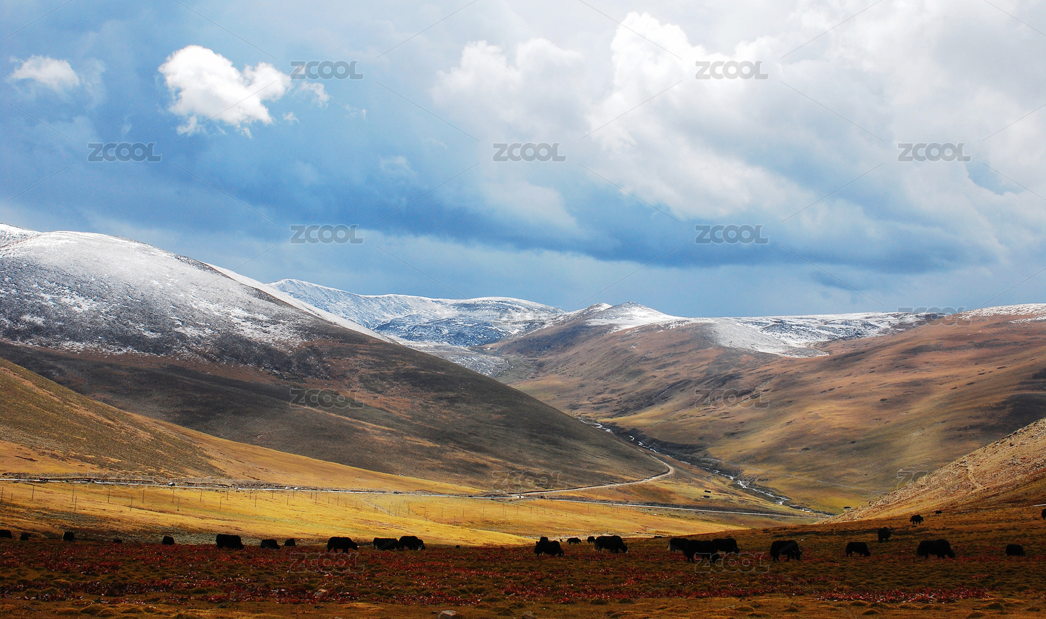 中国青藏线109国道雪山下的野驴