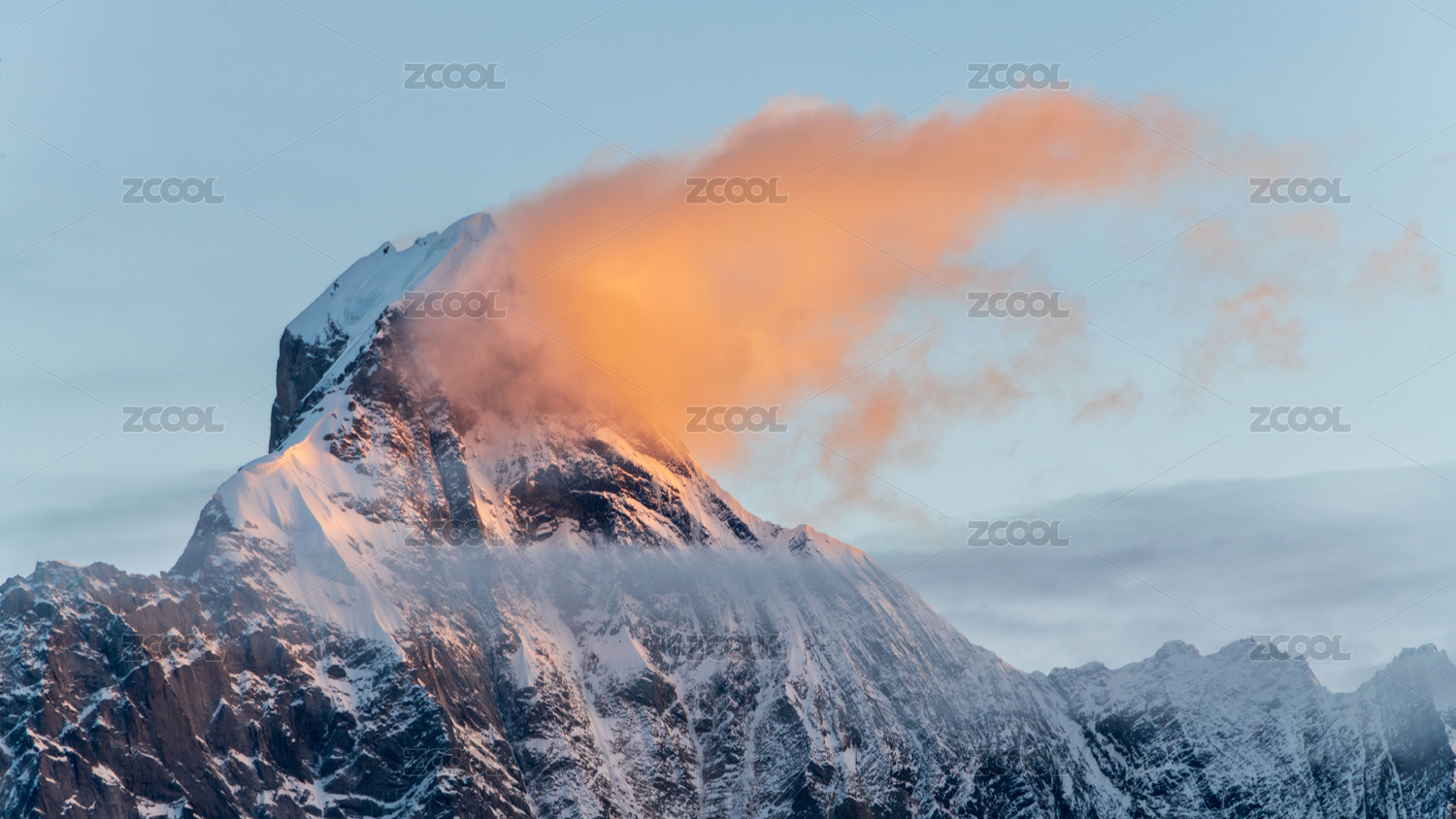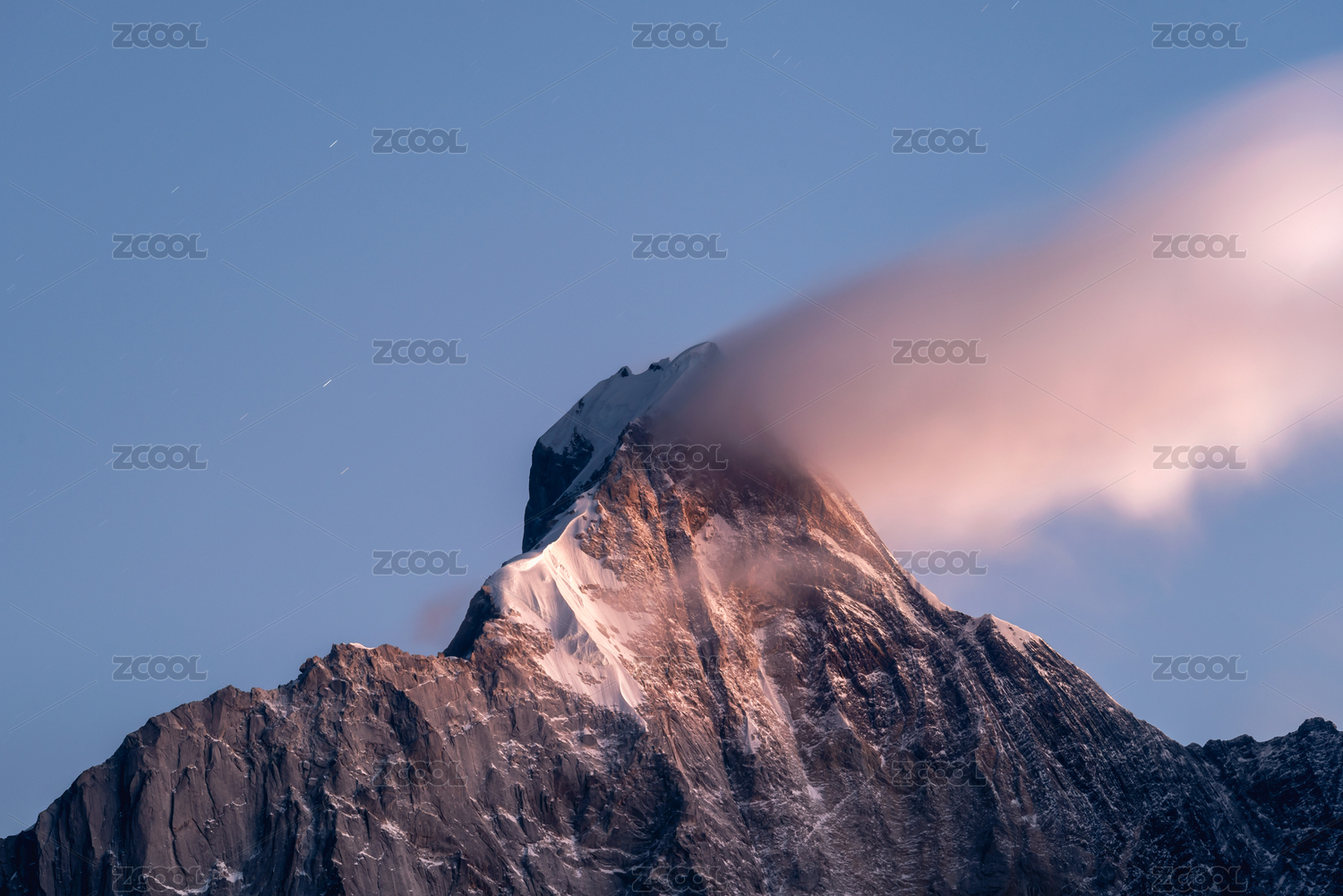 长焦拍摄中国西藏林芝雪山日照金山细节特写