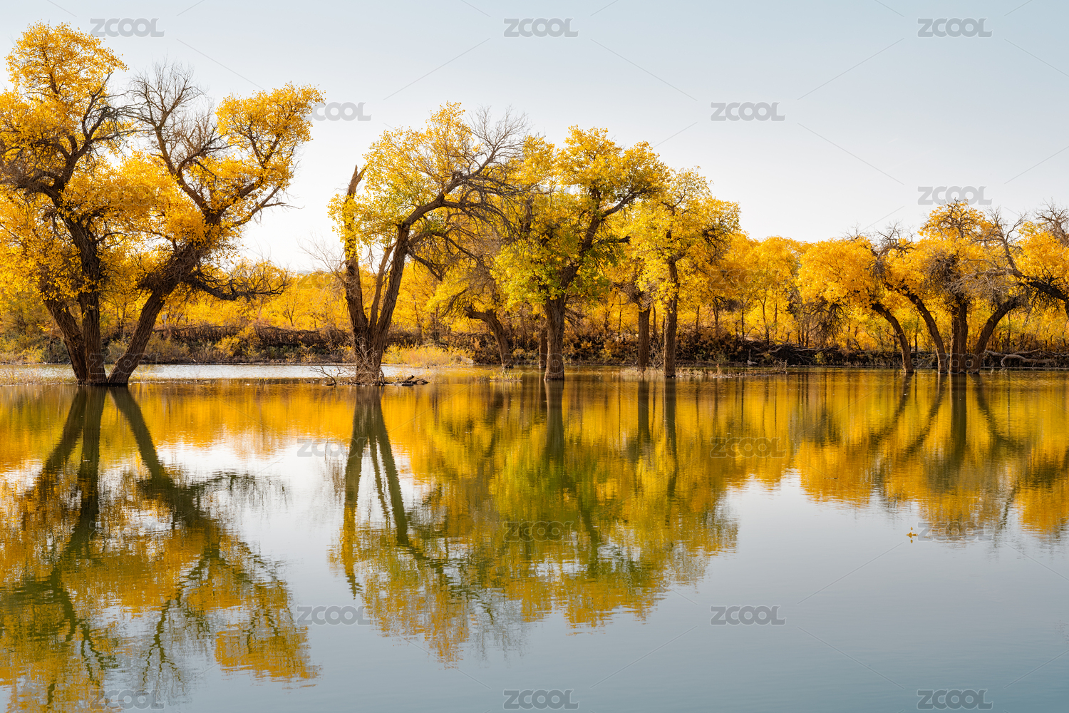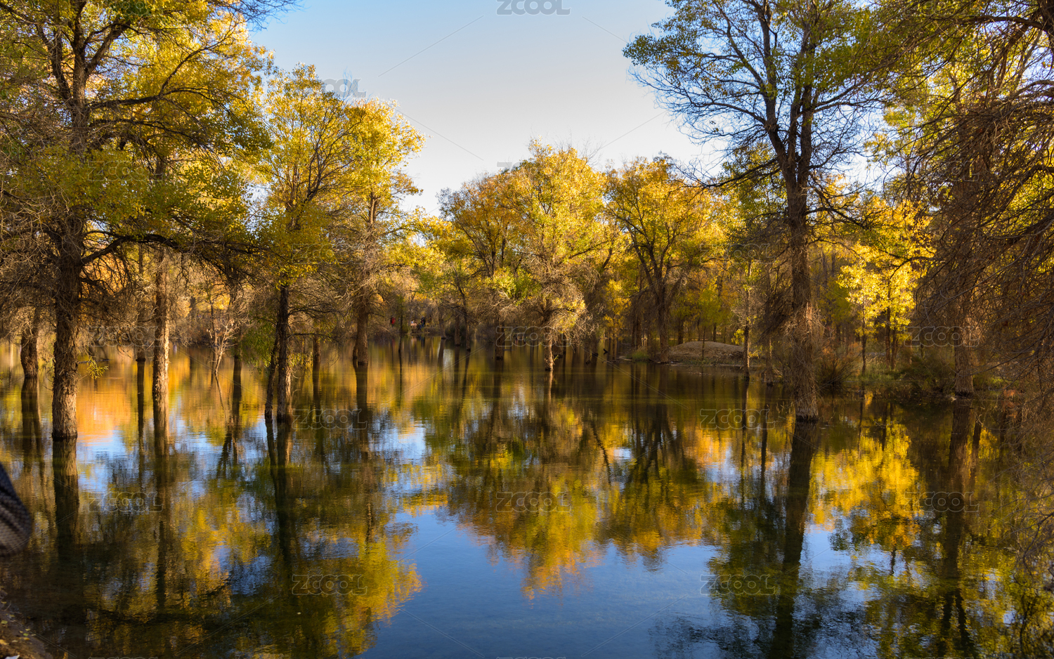 中国酒泉金塔秋天胡杨林水面光影
