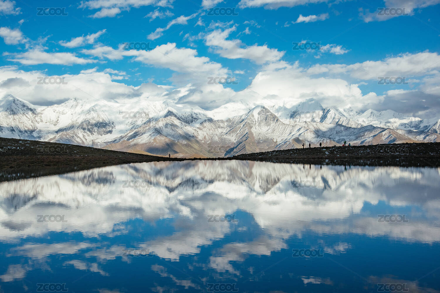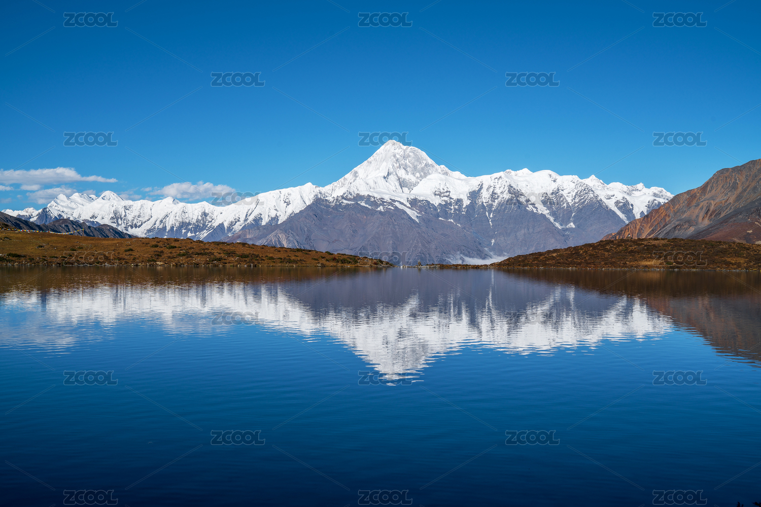 中国四川冷噶措贡嘎雪山倒影