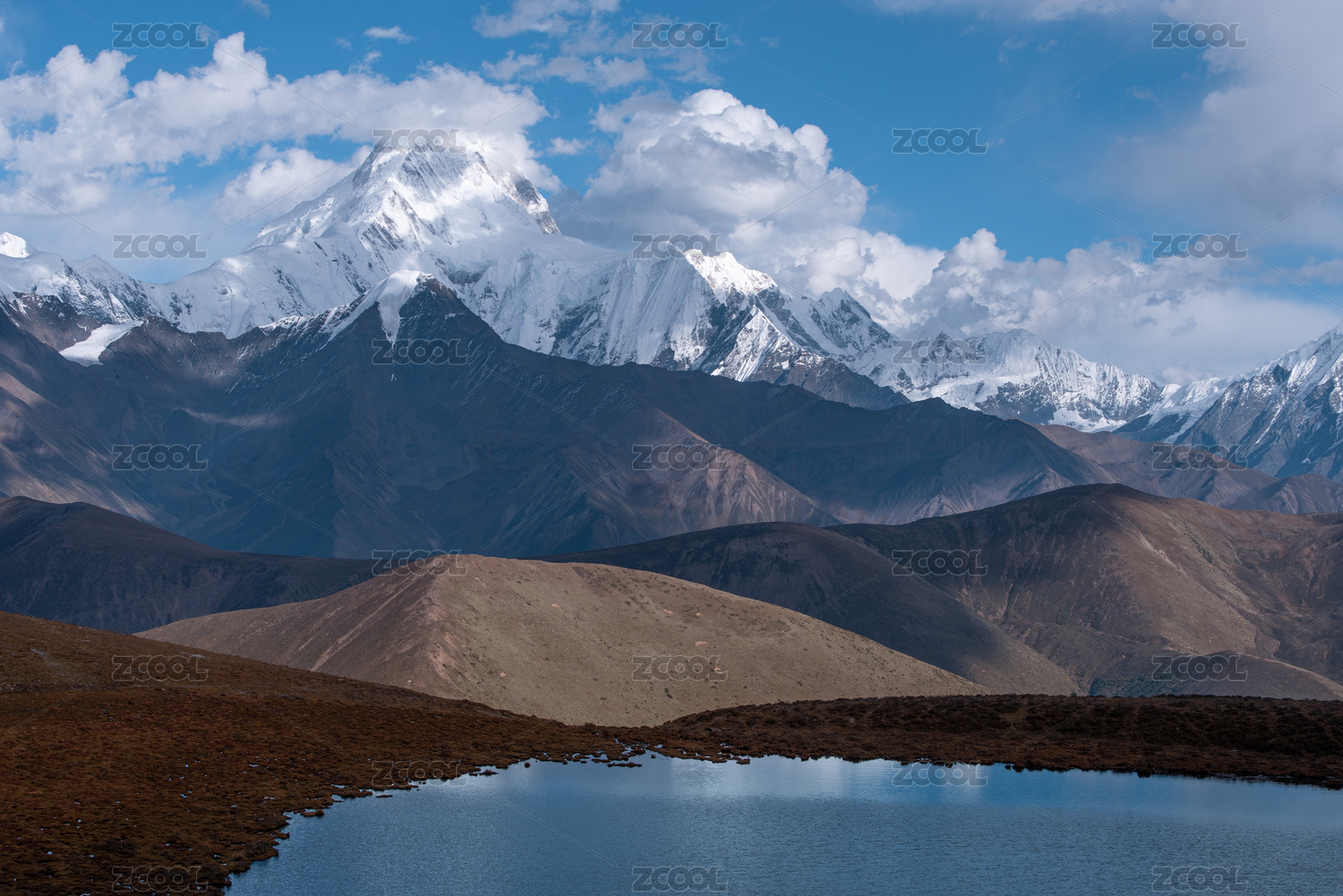 四川甘孜州冷噶错远望贡嘎山