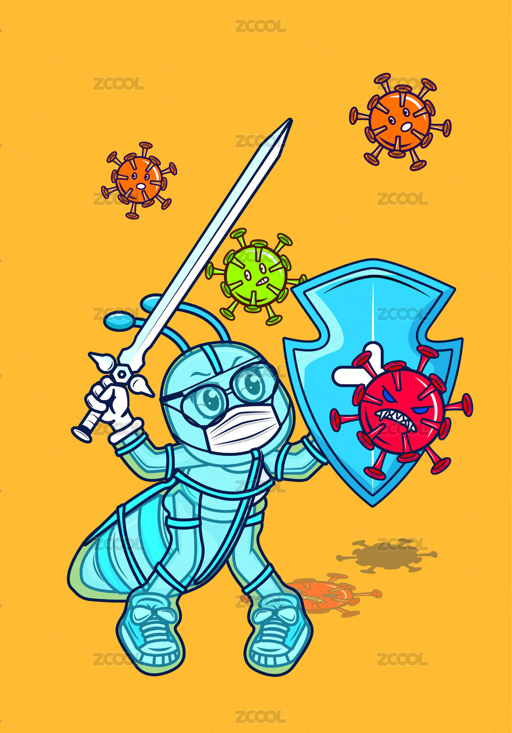防疫志愿者身穿防护服用疫苗和消杀抗击新冠