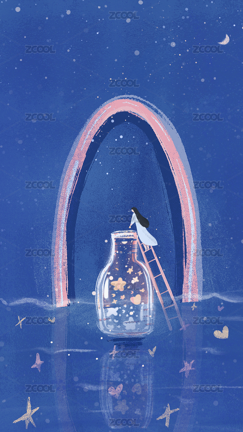 星空,蓝色,大海,星星,鸟,船,小女孩,HEWP2023