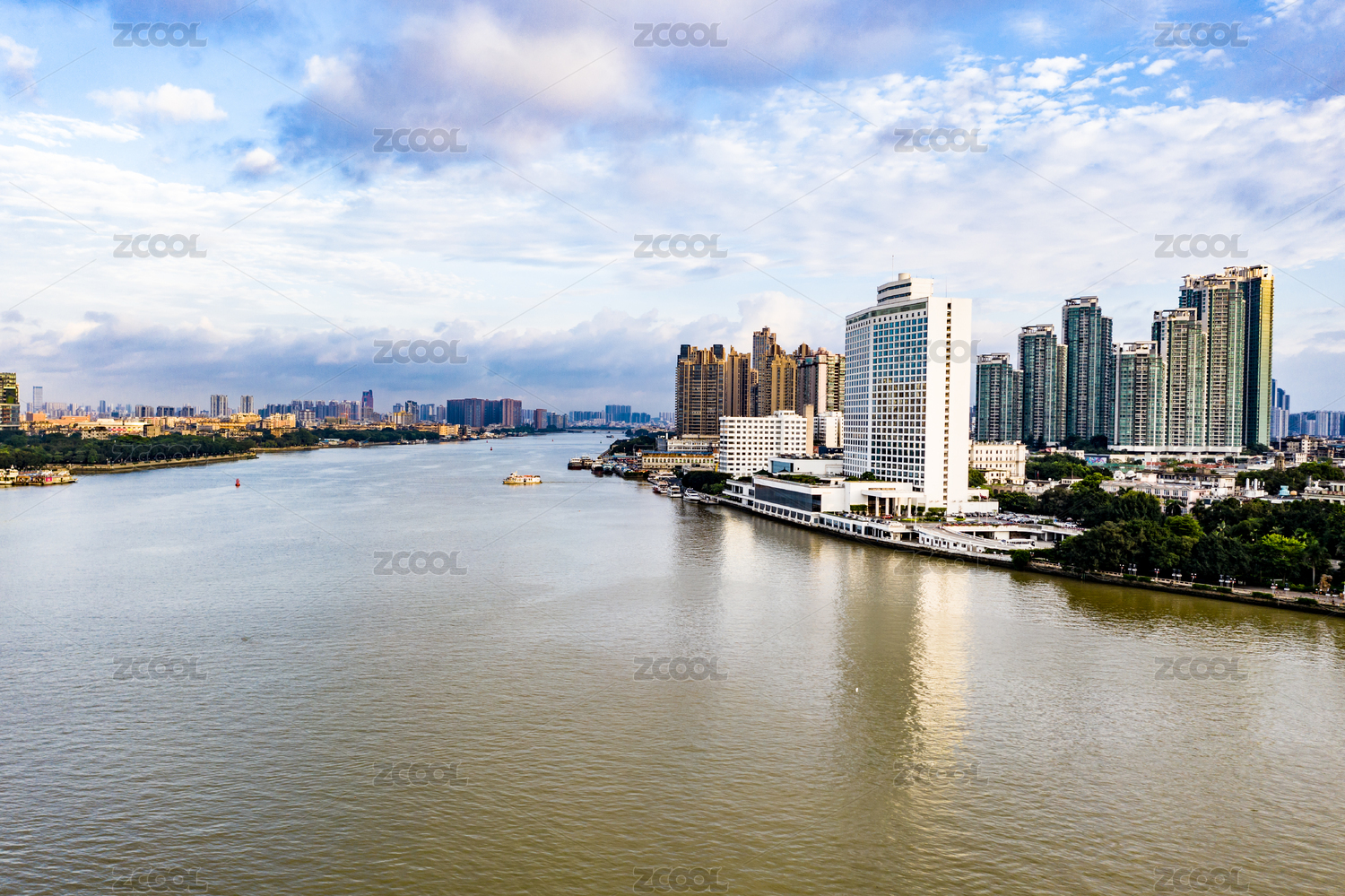 中国广州城市风光,珠江白鹅潭,白天鹅宾馆