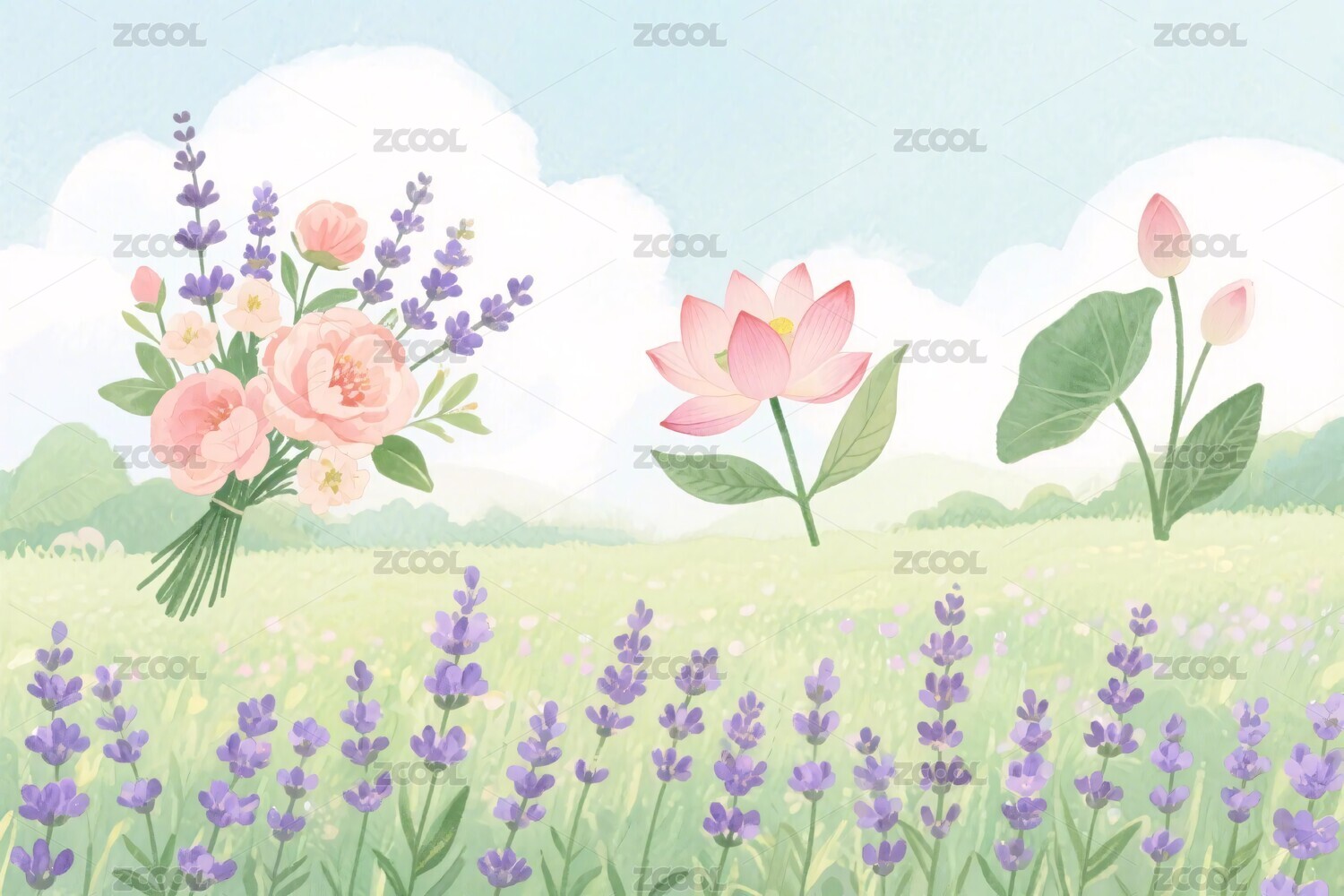 薰衣草,紫色,宁静,蓝天,白云,花,平面,山水,风景,场景