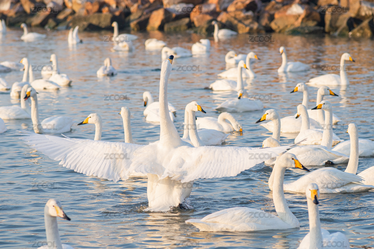 山东荣成天鹅湖里越冬的西伯利亚大天鹅