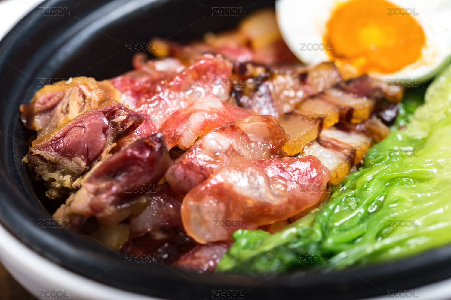 排骨腊肠砂锅饭,排骨,腊肠,生菜,葱花,砂锅,家常菜,食品,美食,陶瓷