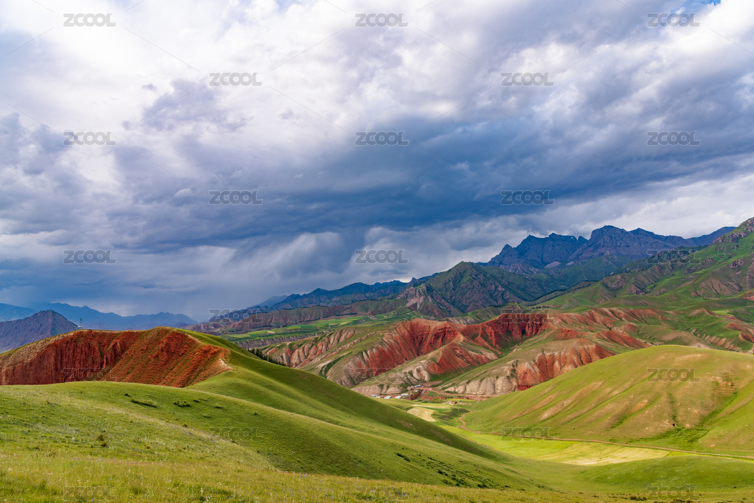 青海祁连卓尔山丹霞地貌草原牧场自然风光
