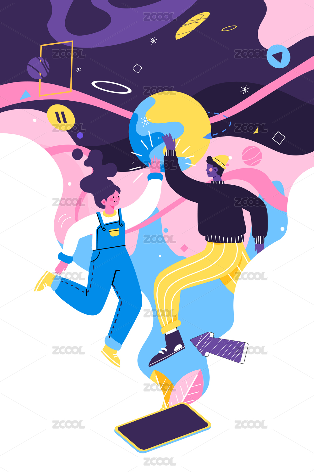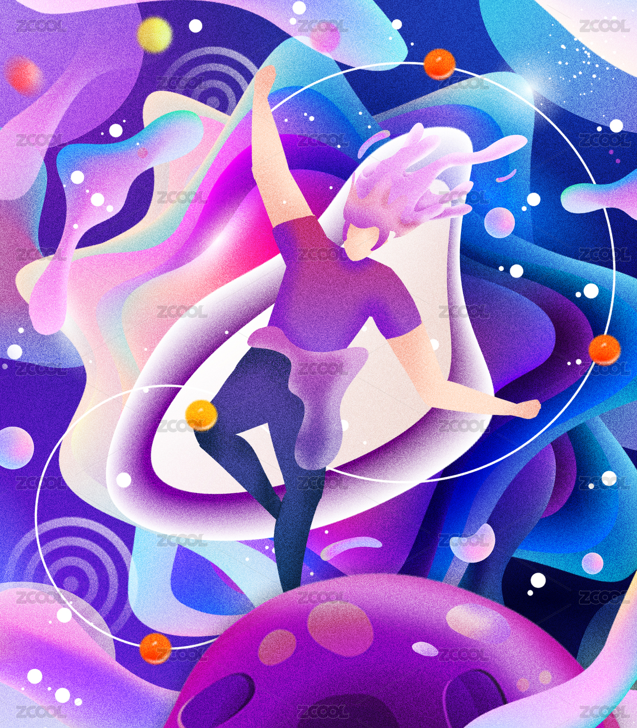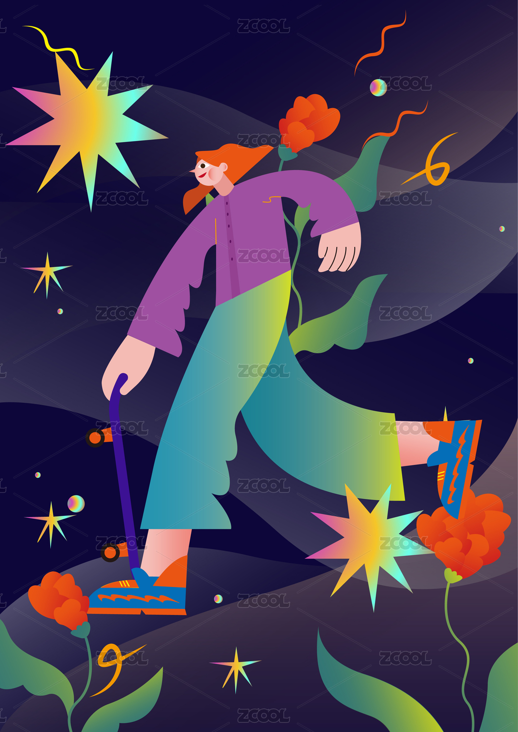 女生节,插图,睡觉,跑步,坠落,花,深蓝色,带背景,女孩,海报
