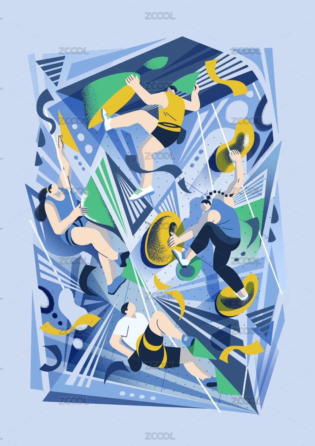练瑜伽的女孩, 手绘人物场景创意概念插画