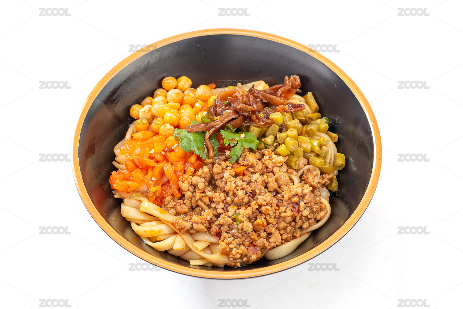 炸酱面,俯视,俯拍,斜拍,美食,中式美食,白底图,米线,食品,蔬菜