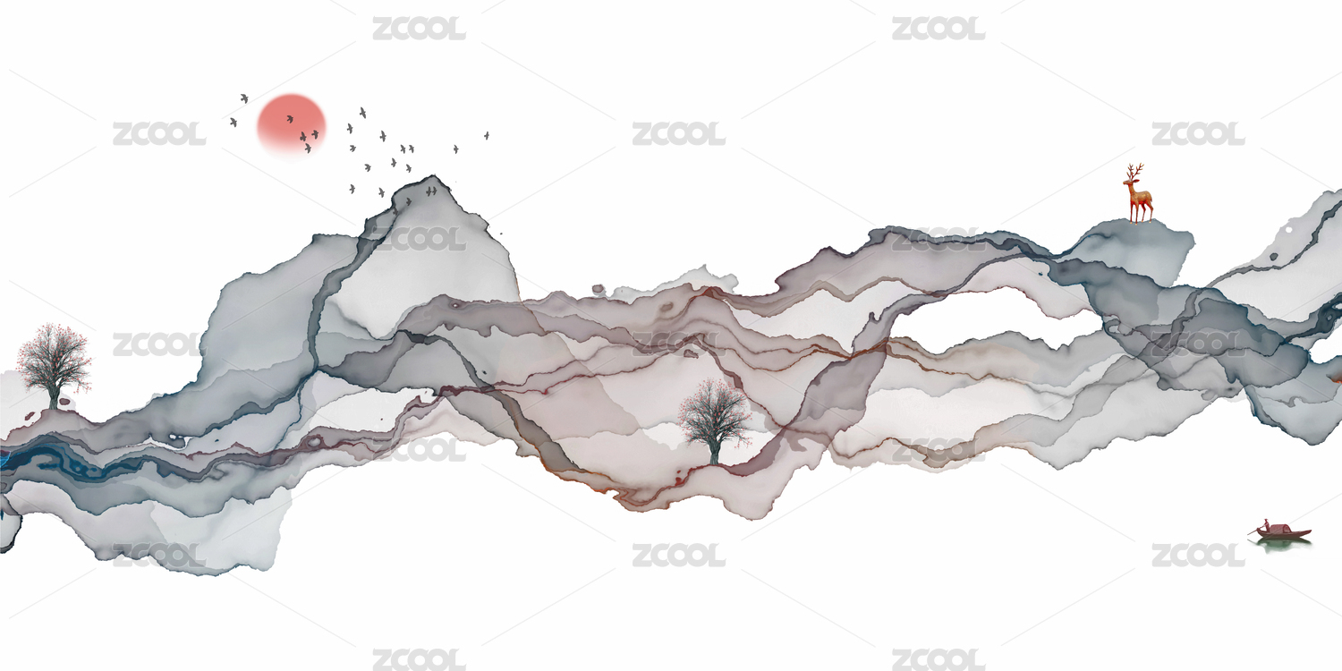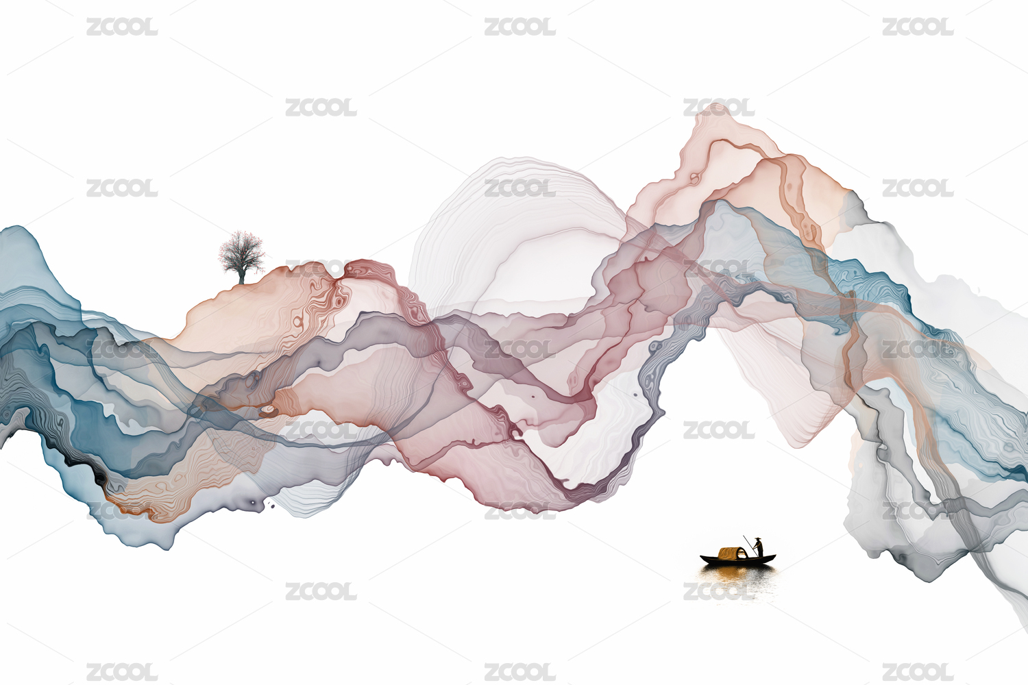 抽象艺术水墨线条新中式山水装饰画海报背景