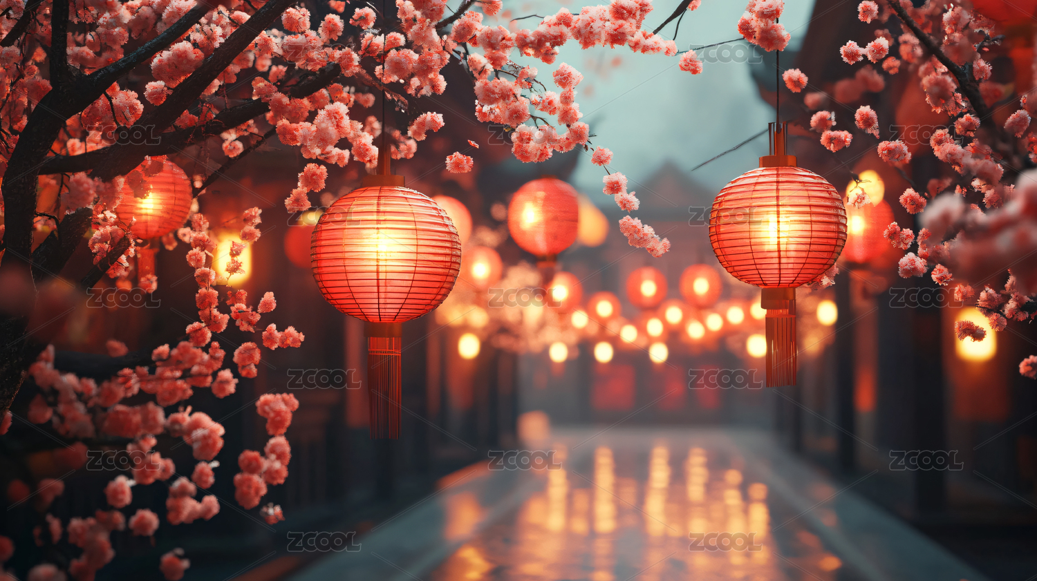 红灯笼与樱花