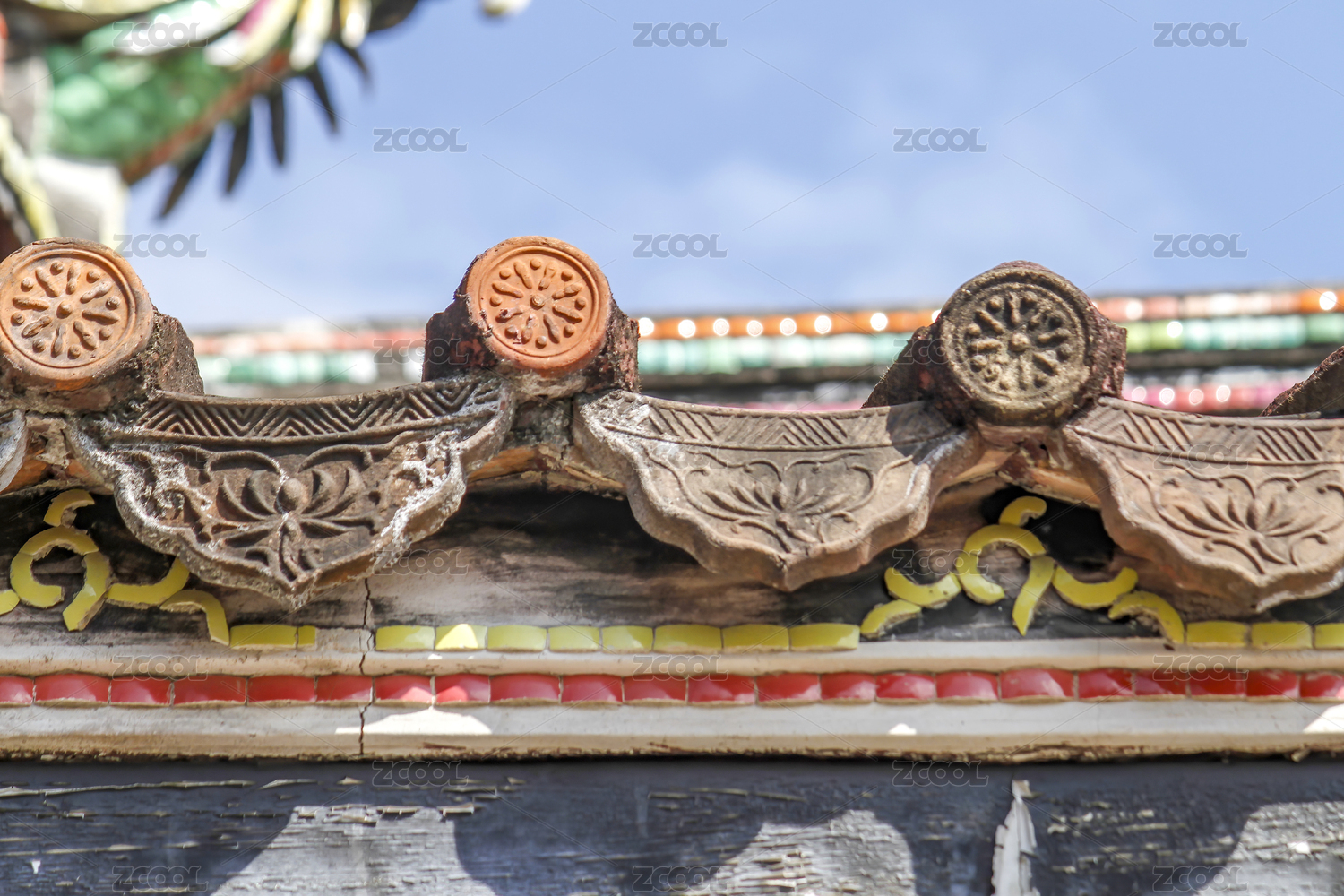 古建筑屋檐的瓦片特写