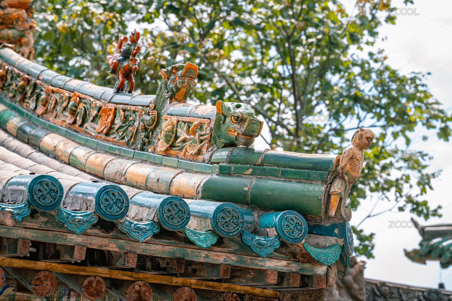 故宫古建筑飞檐屋脊兽特写