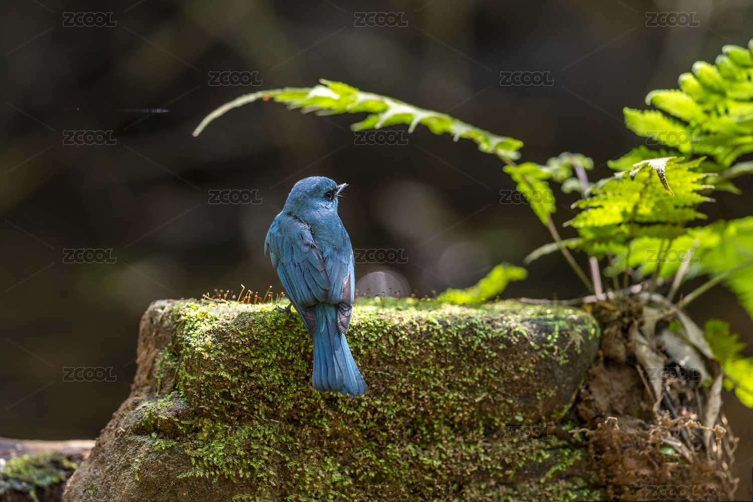 一只蓝矶鸫鸟于海岸岩石或山地上觅食生活