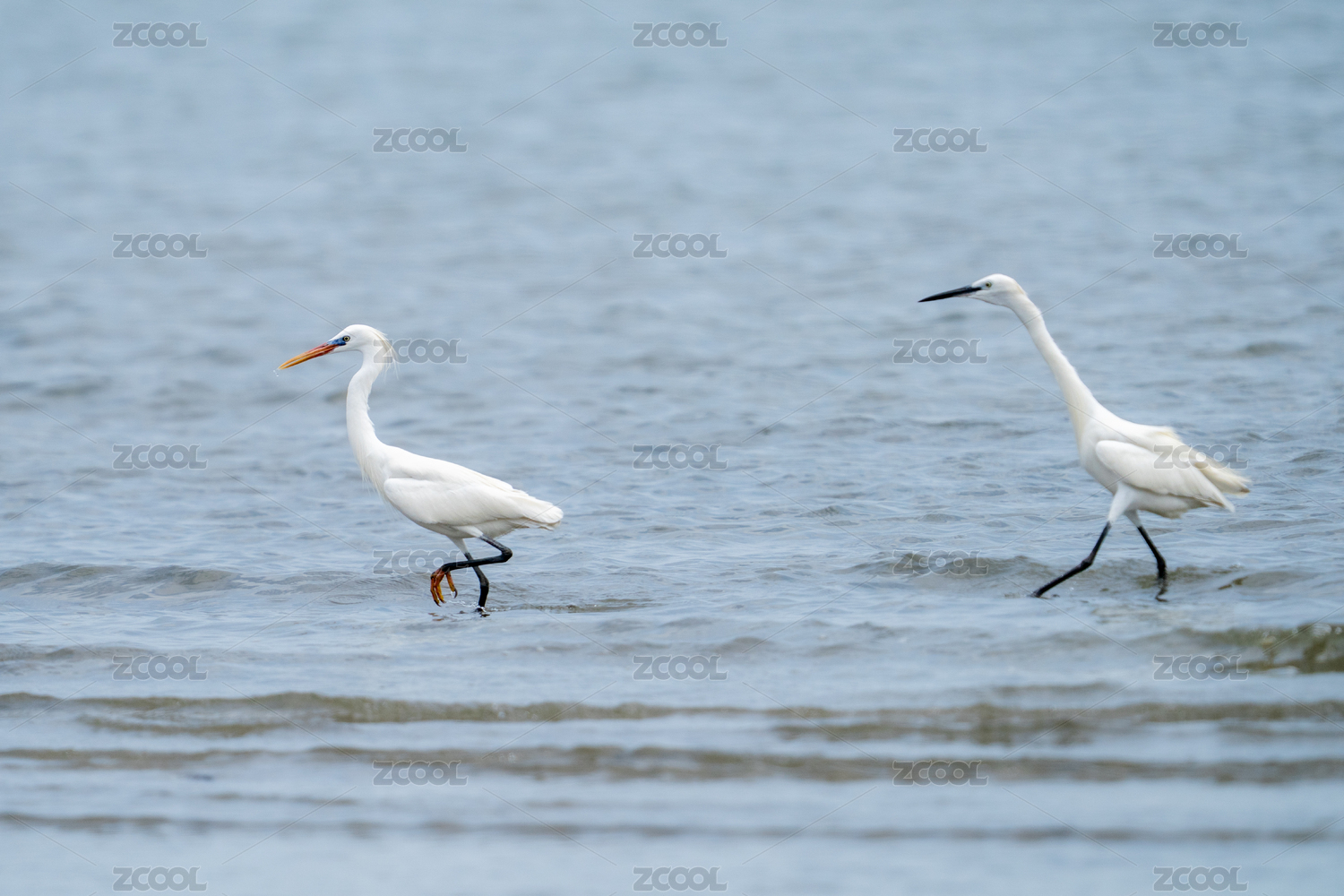 中国河北省秦皇岛市北戴河湿地白鹭觅食