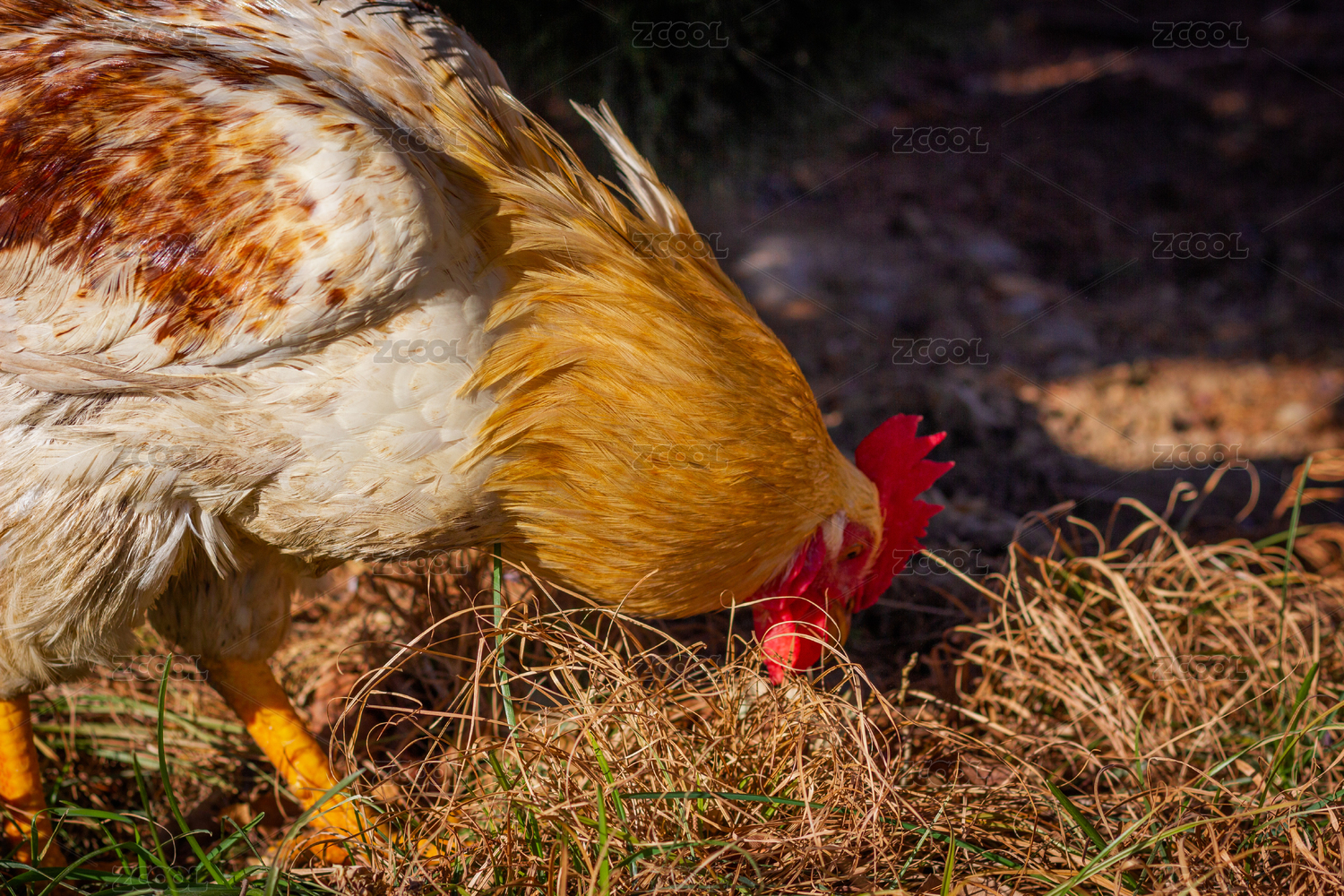 公鸡,动物,草地,黄色,野生,羽毛,鸡冠,喙,找食,家畜