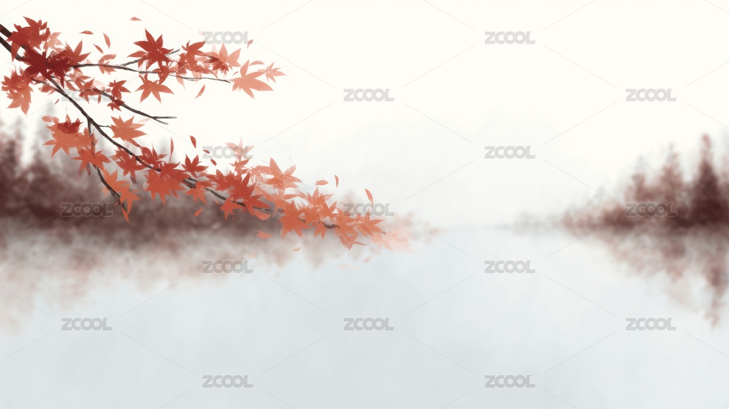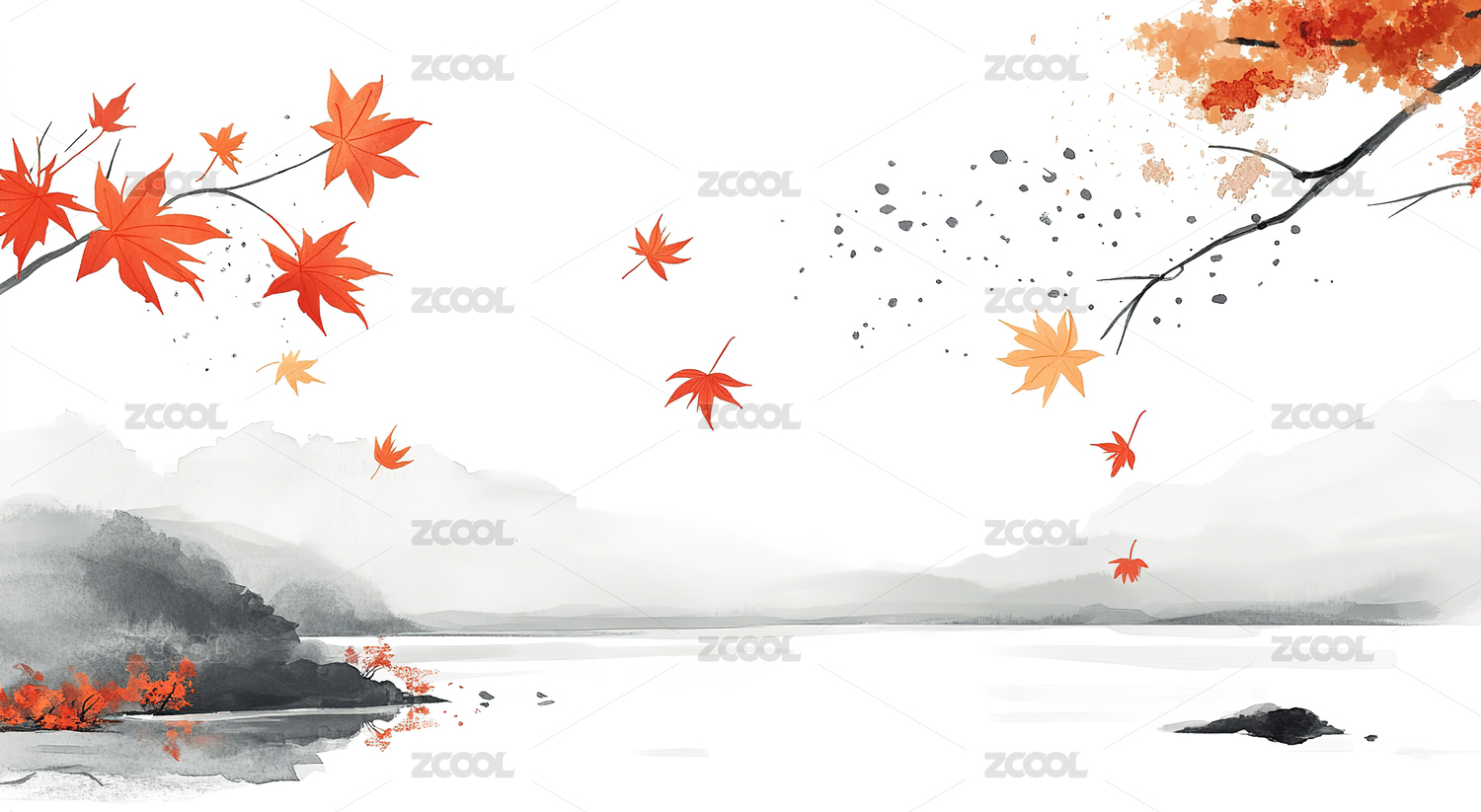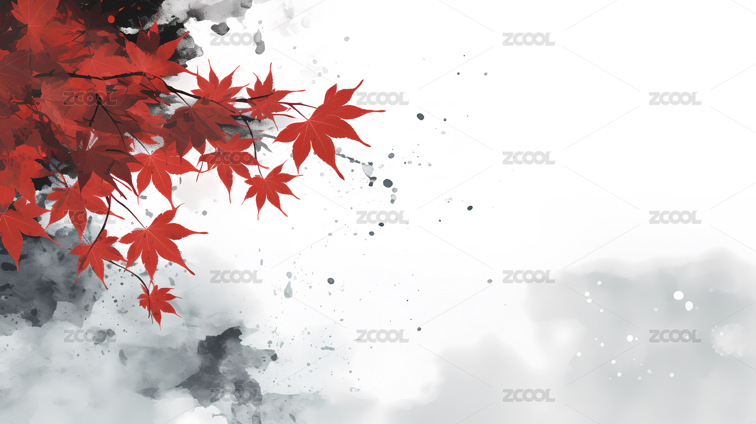 枫叶,背景,留白,水墨风,中国风,元素,素材,古风,传统,季节