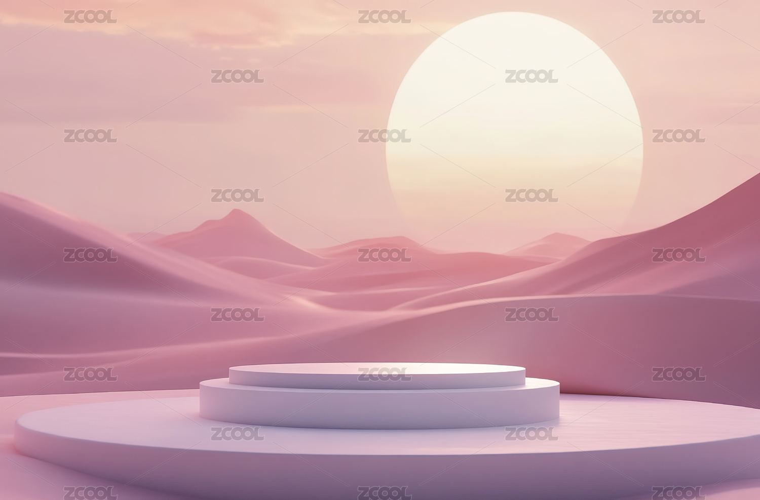 黄色沙漠地形与白色圆形产品展台背景