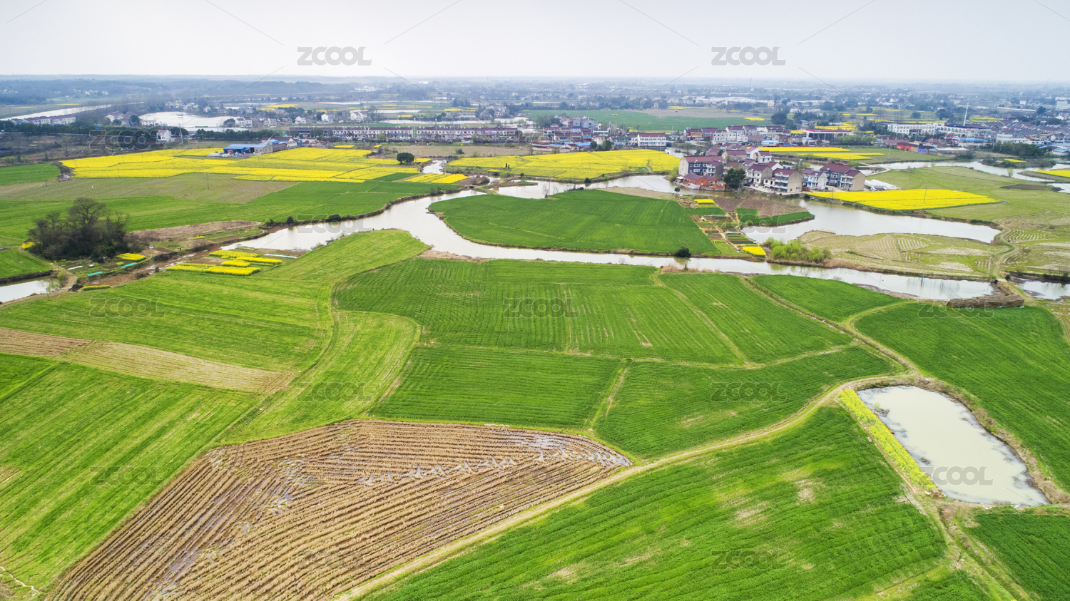 航拍中国安徽省宣城市乡村稻田和美丽田园风光