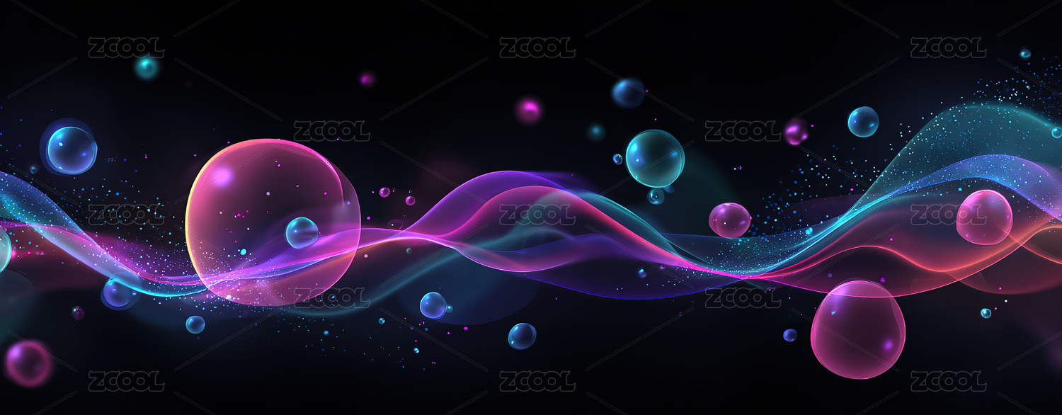 霓虹光波中的悬浮彩球