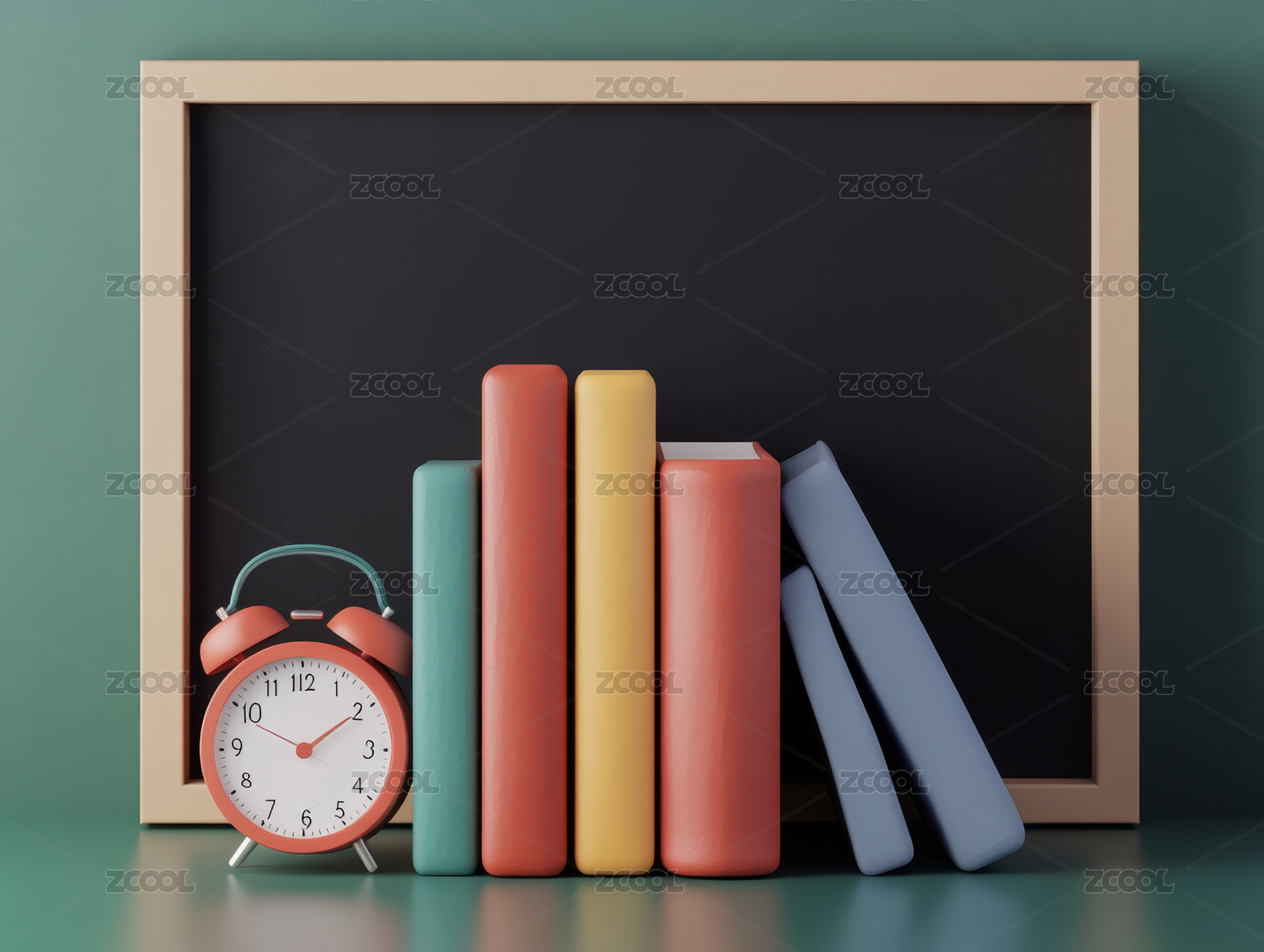 书,黑板,闹钟,倒计时,留白,无人,开学季,插画,式样,创造力