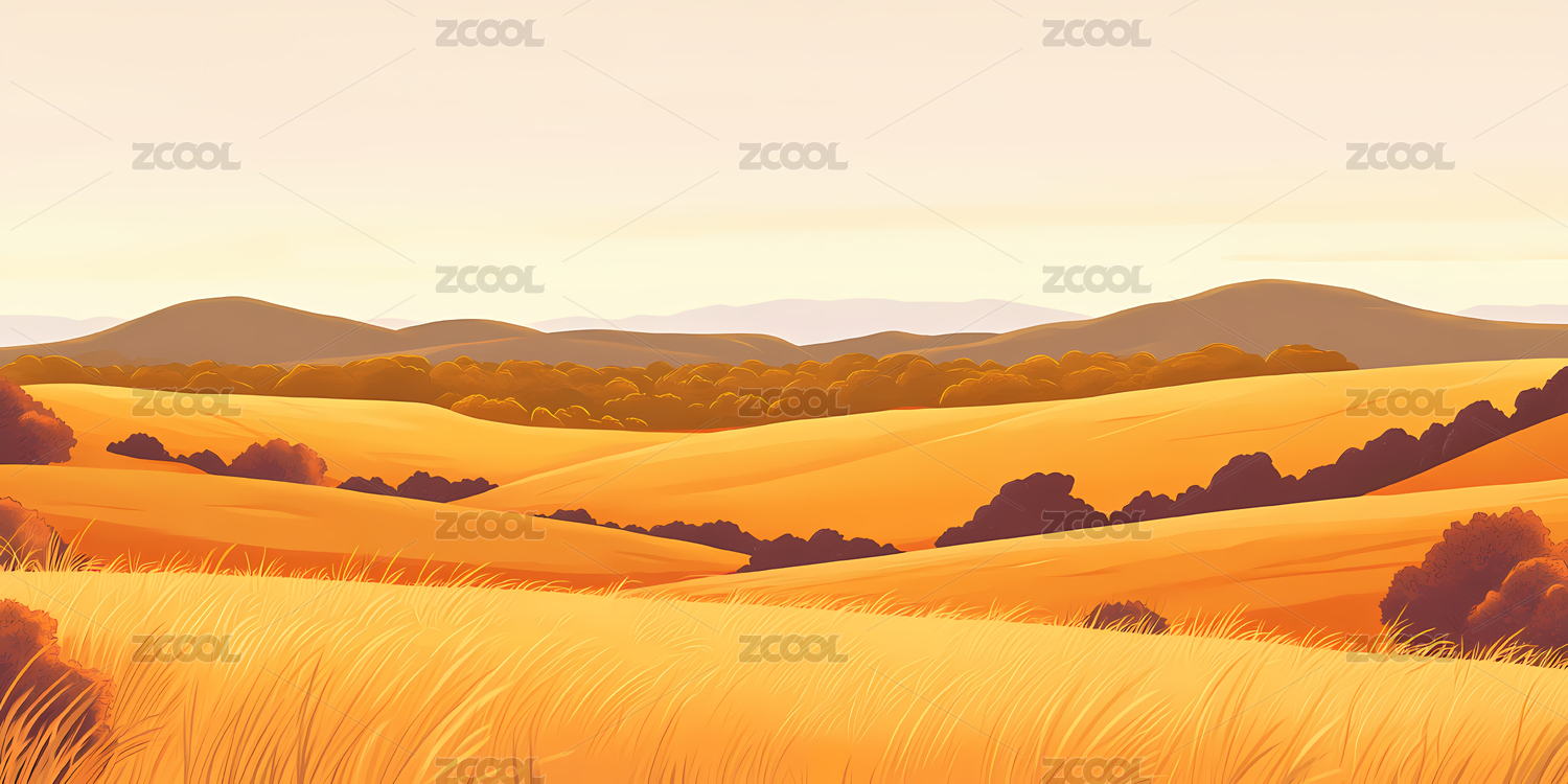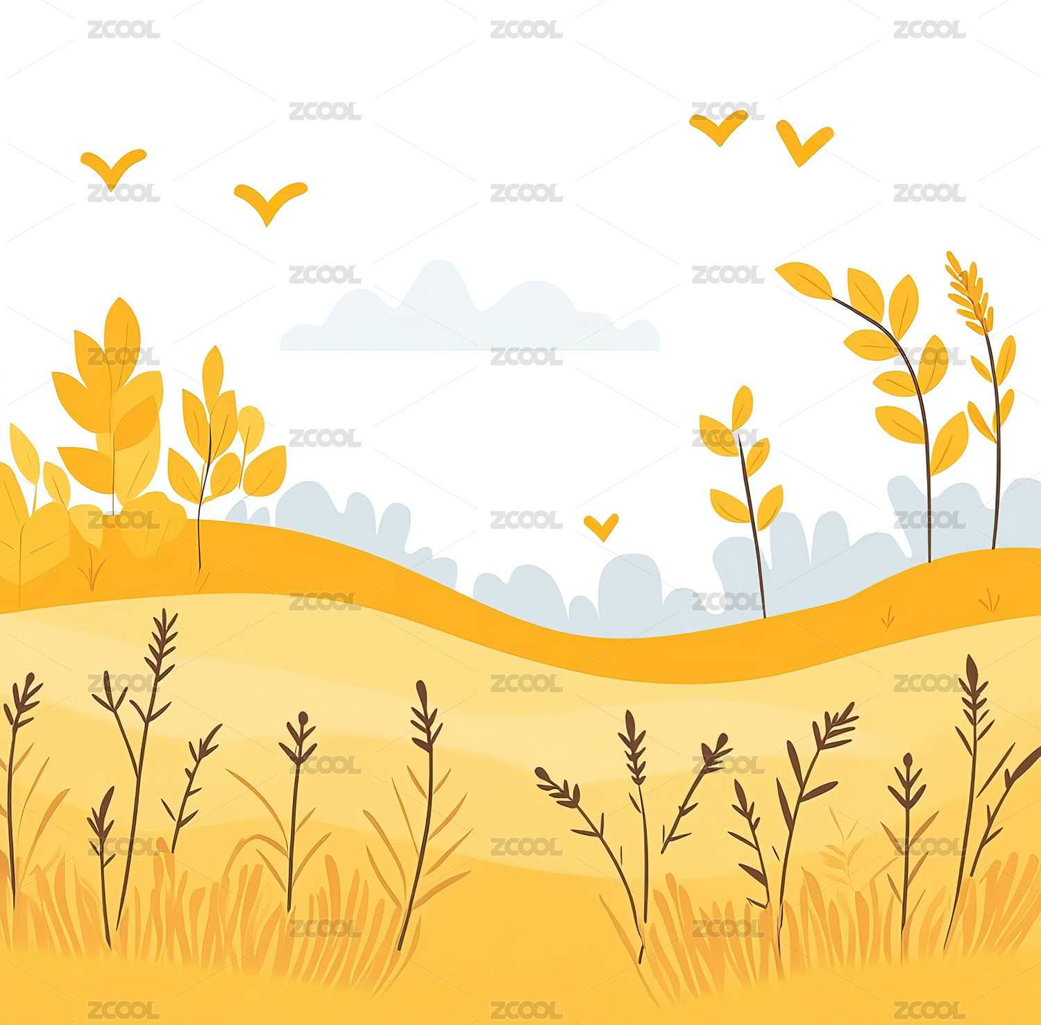立秋节气户外旅行自然风景处暑卡通唯美插画